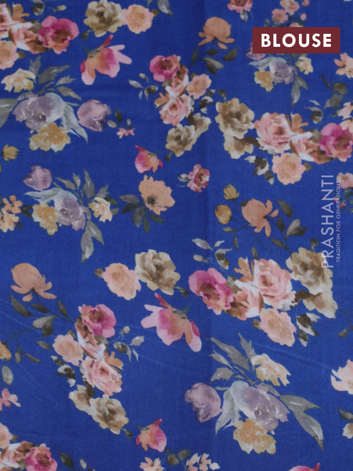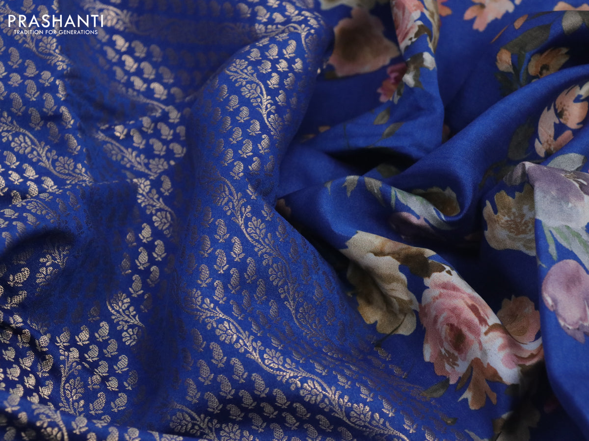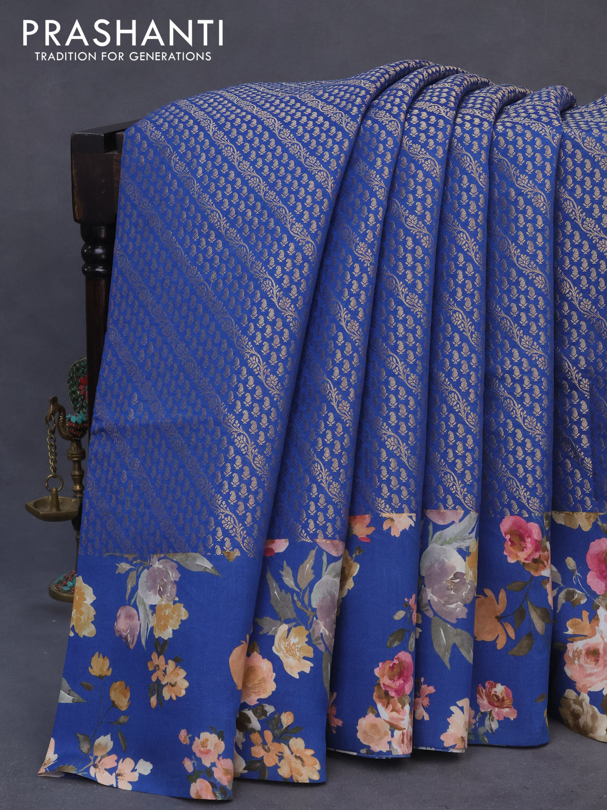 Banarasi silk saree blue with allover zari woven brocade weaves and floral digital printed border