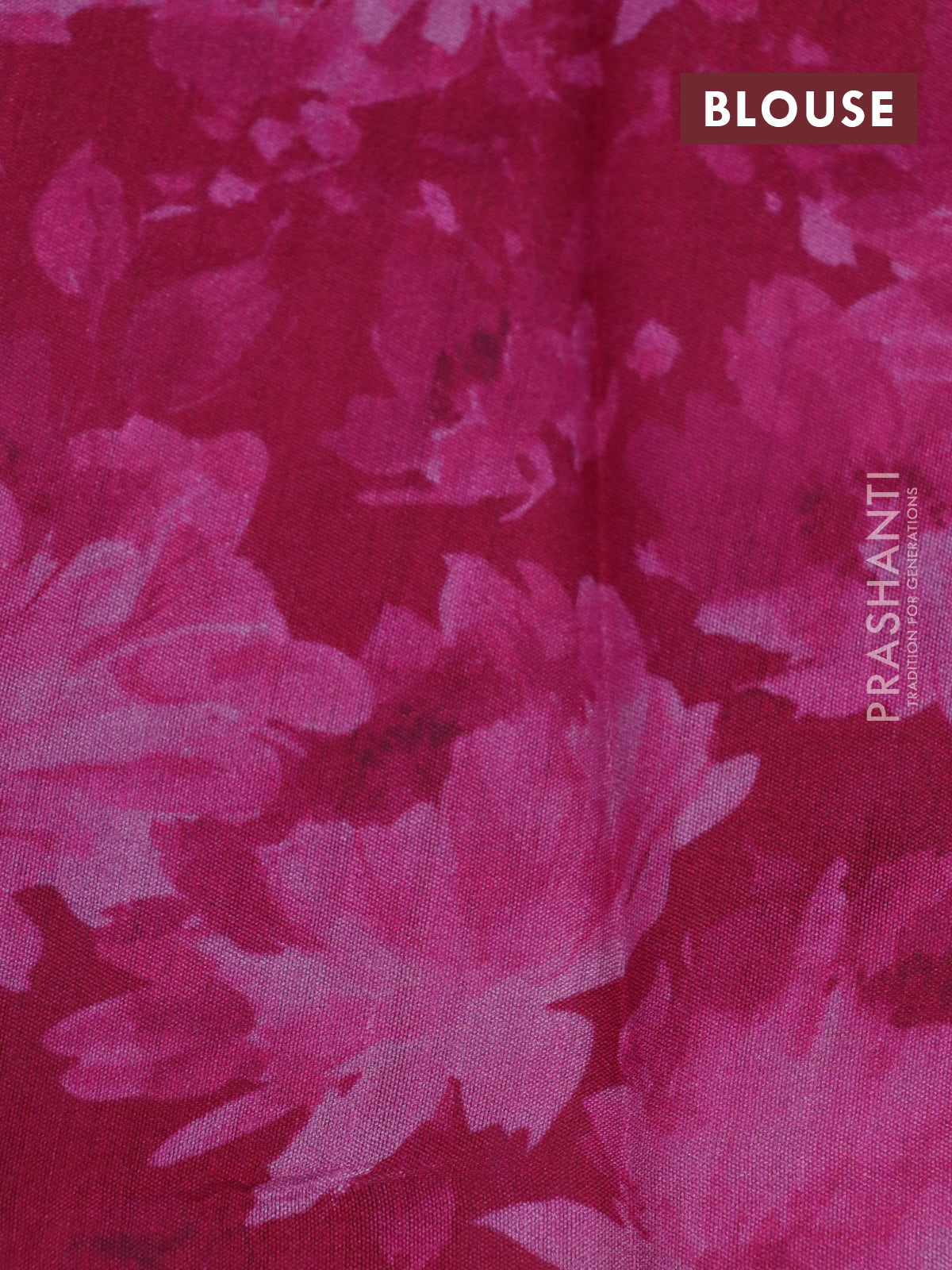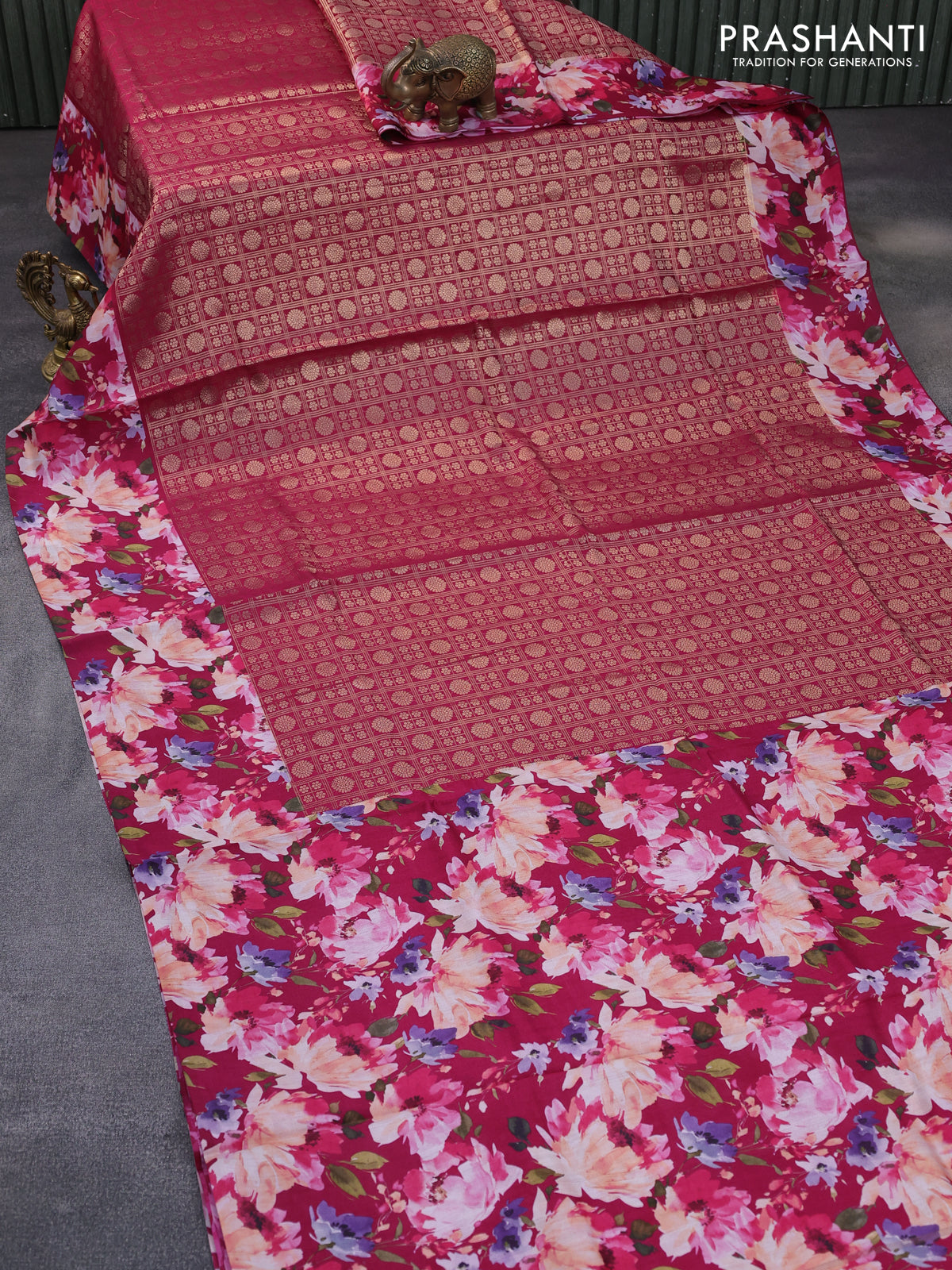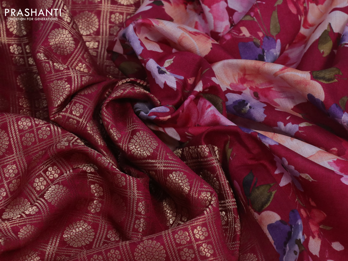 Banarasi silk saree dark pink with allover zari woven brocade weaves and floral digital printed border