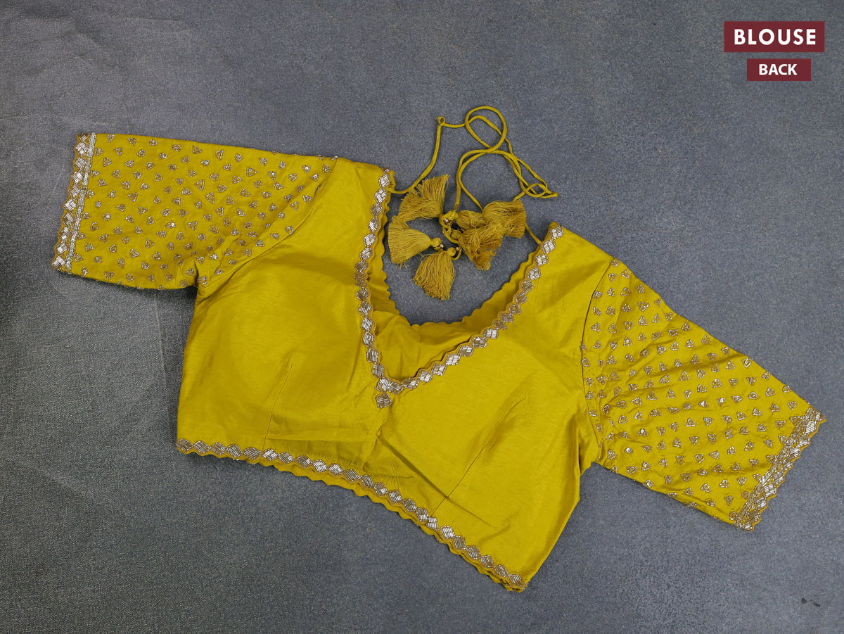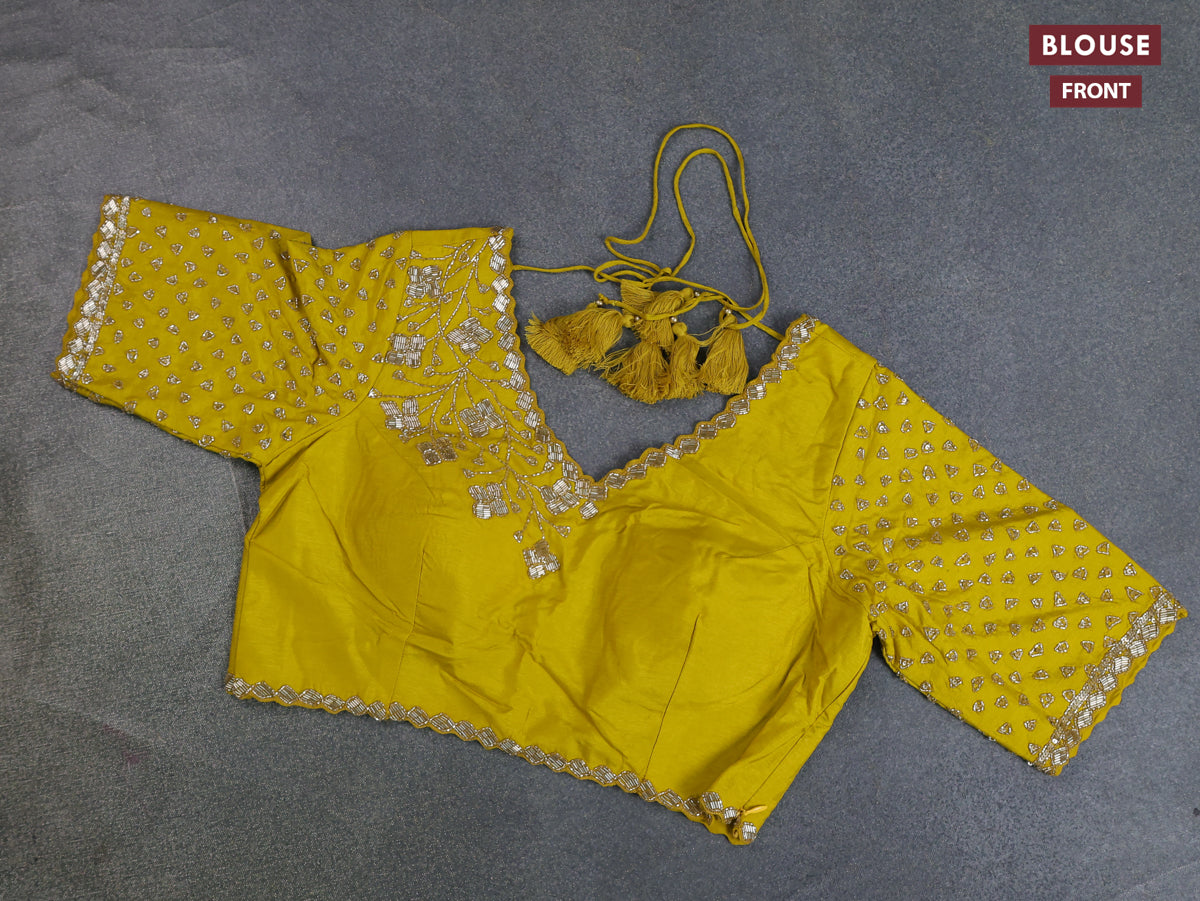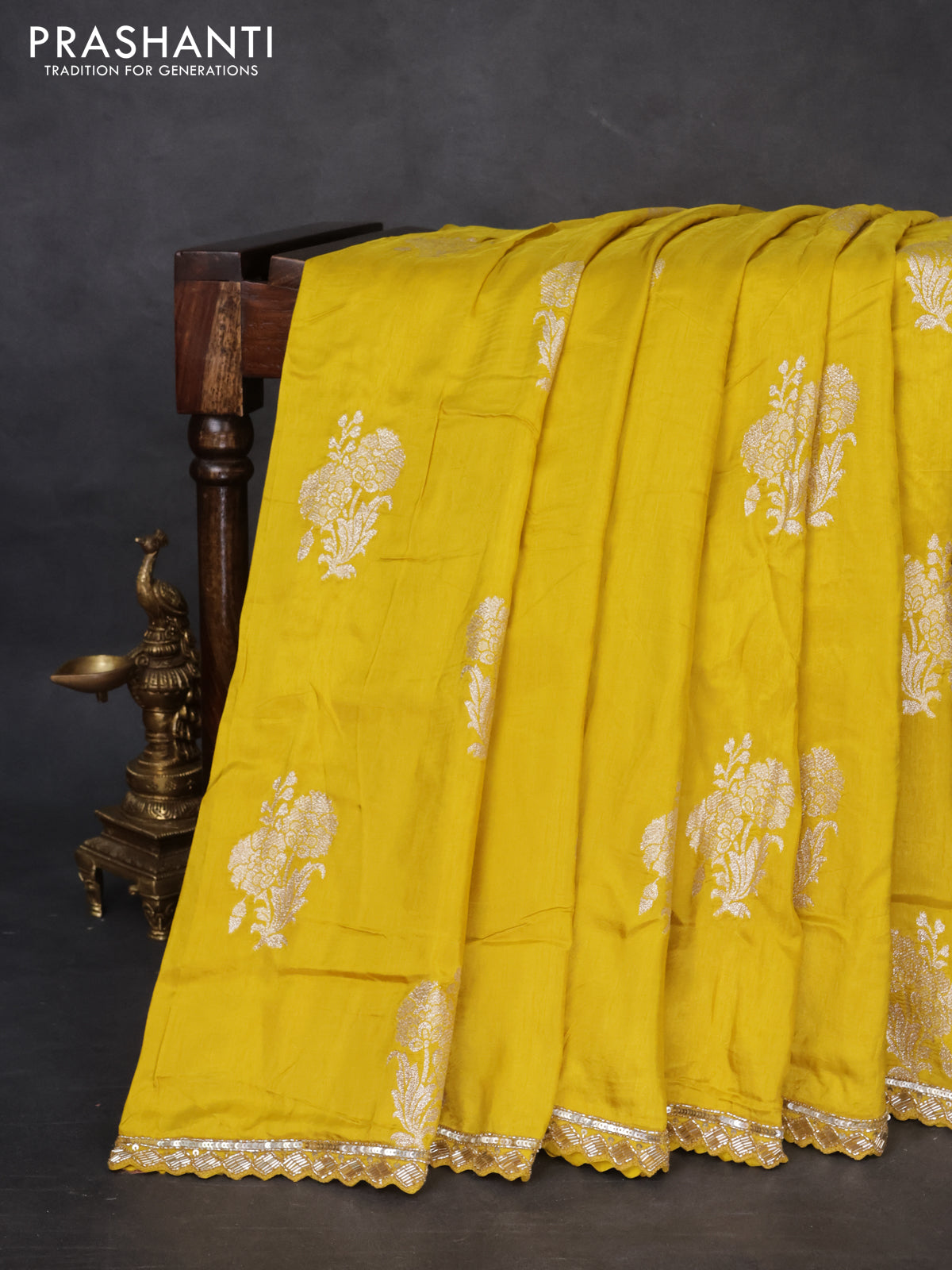 Banarasi silk saree lime yellow with floral zari woven buttas and beaded work border