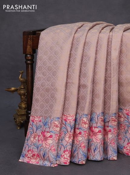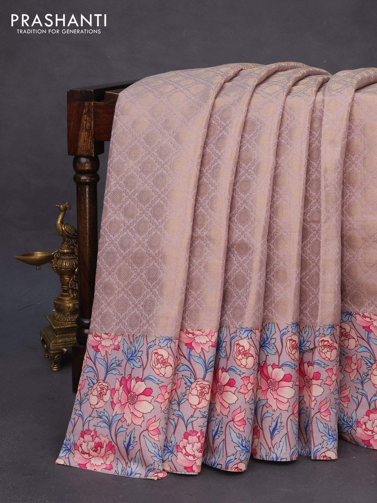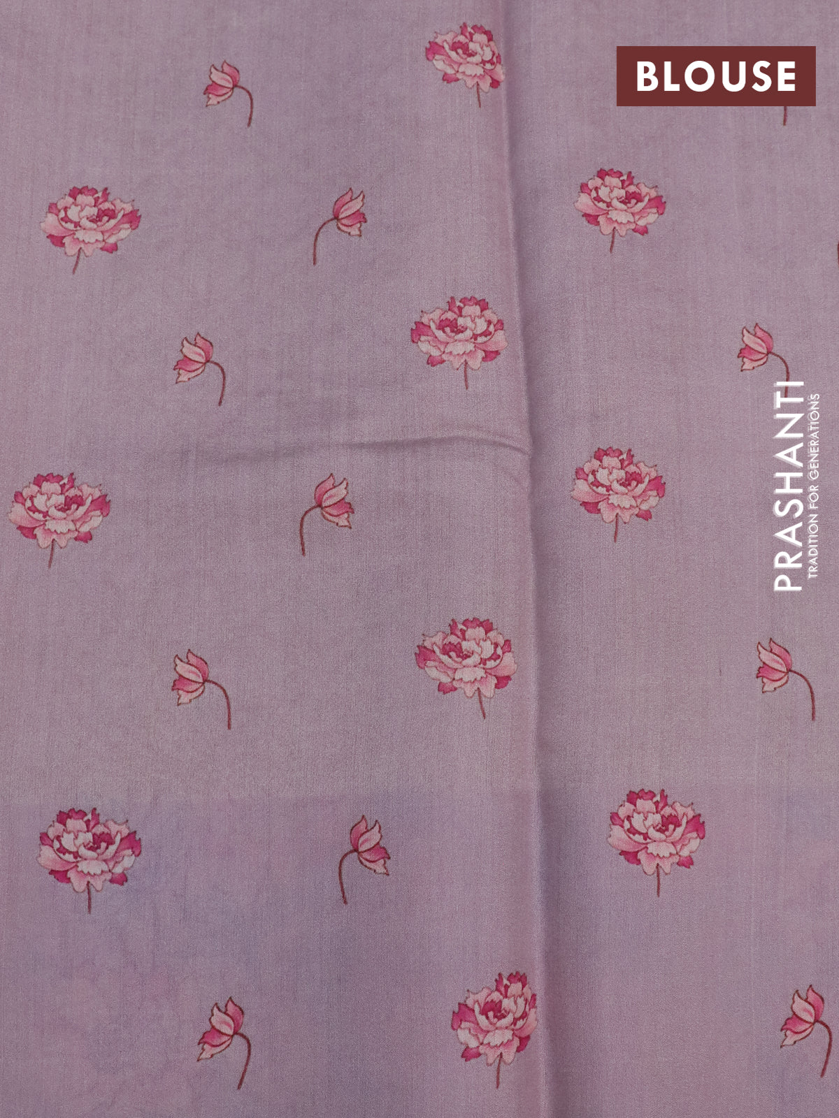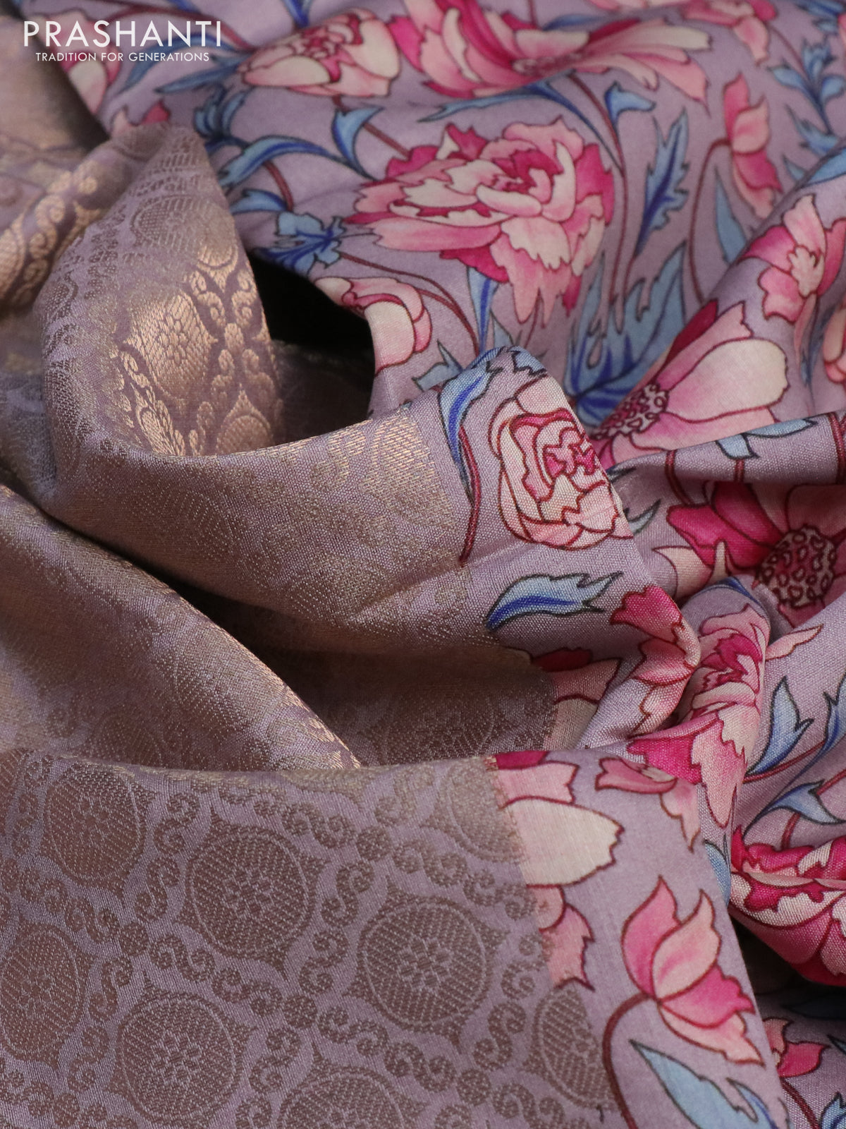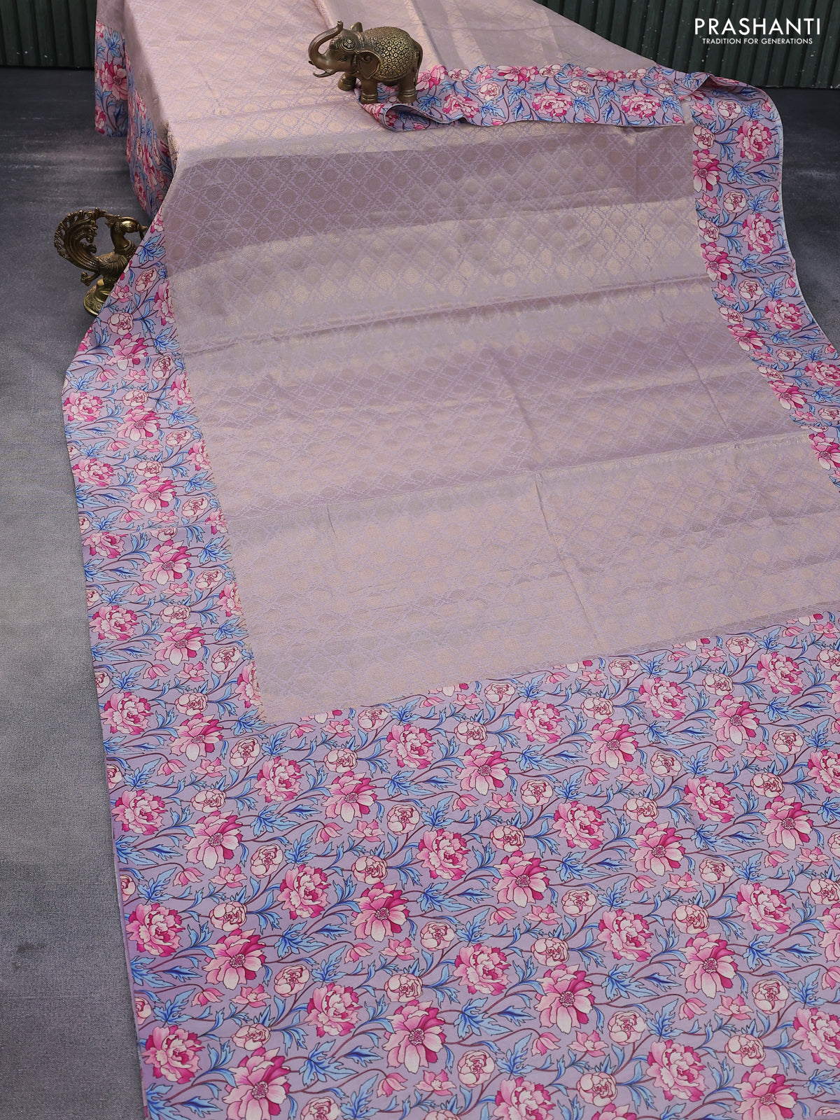 Banarasi silk saree pastel lavender with allover zari woven brocade weaves and floral digital printed border