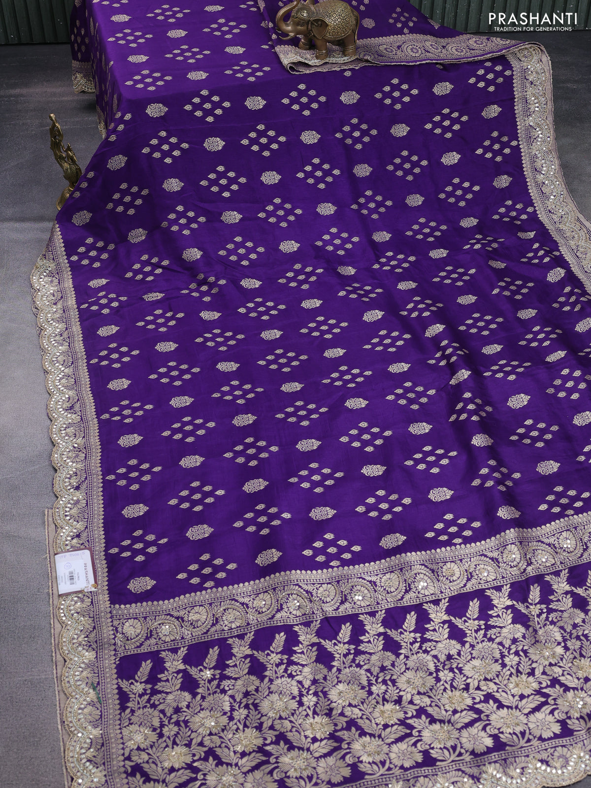 Banarasi silk saree violet with allover zari woven butta weaves and gotapatti work border