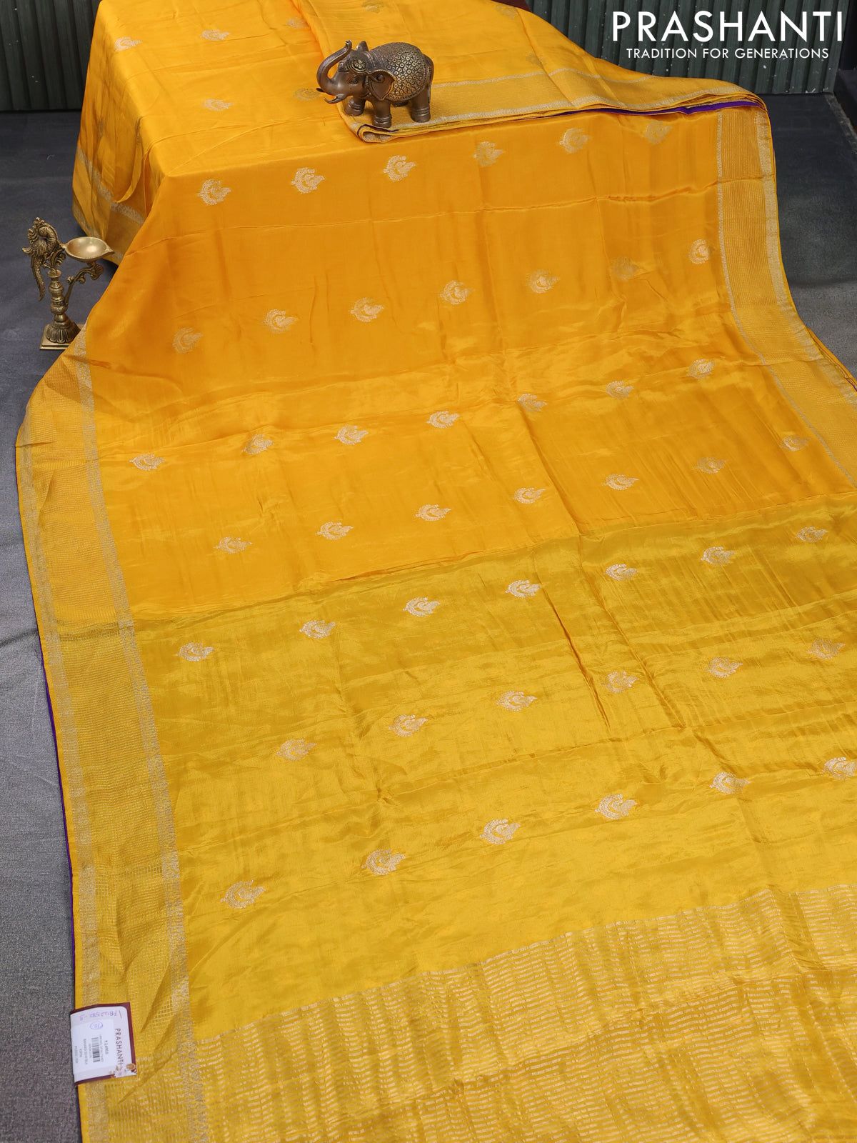 Banarasi silk saree yellow and violet with annam zari woven buttas and zari woven border