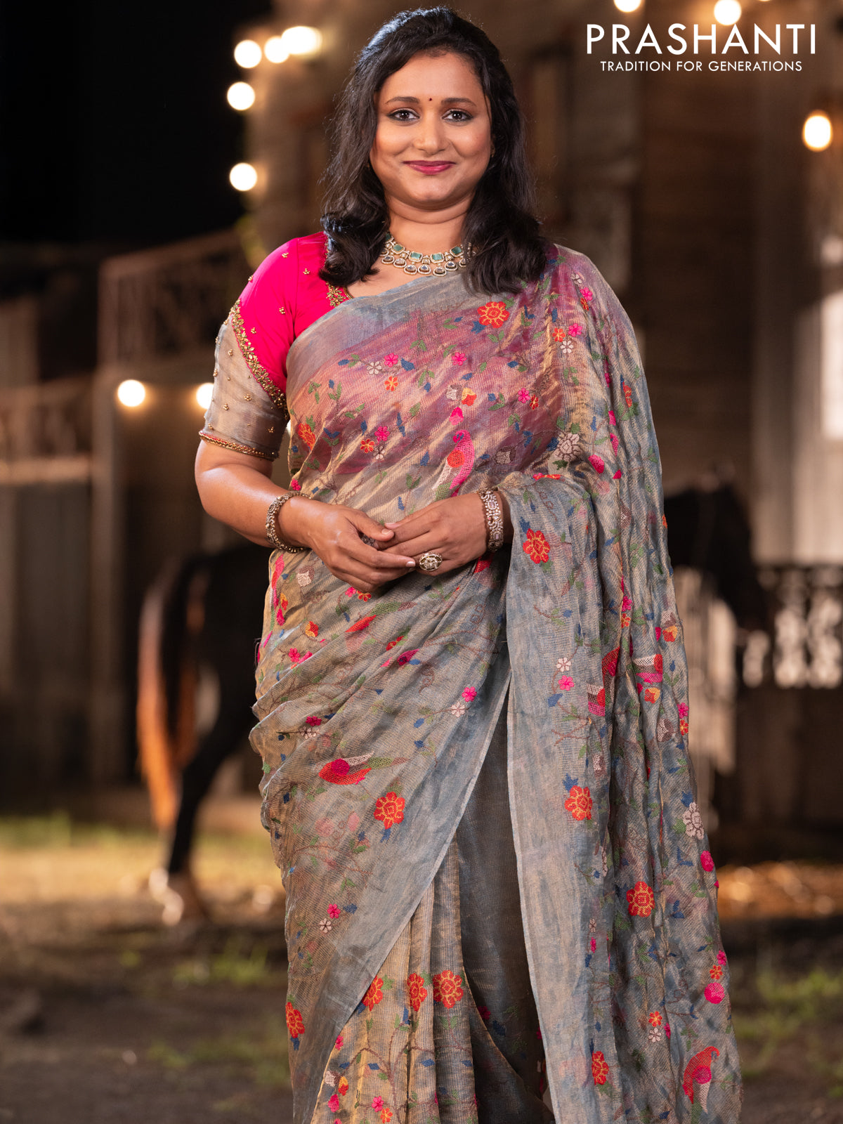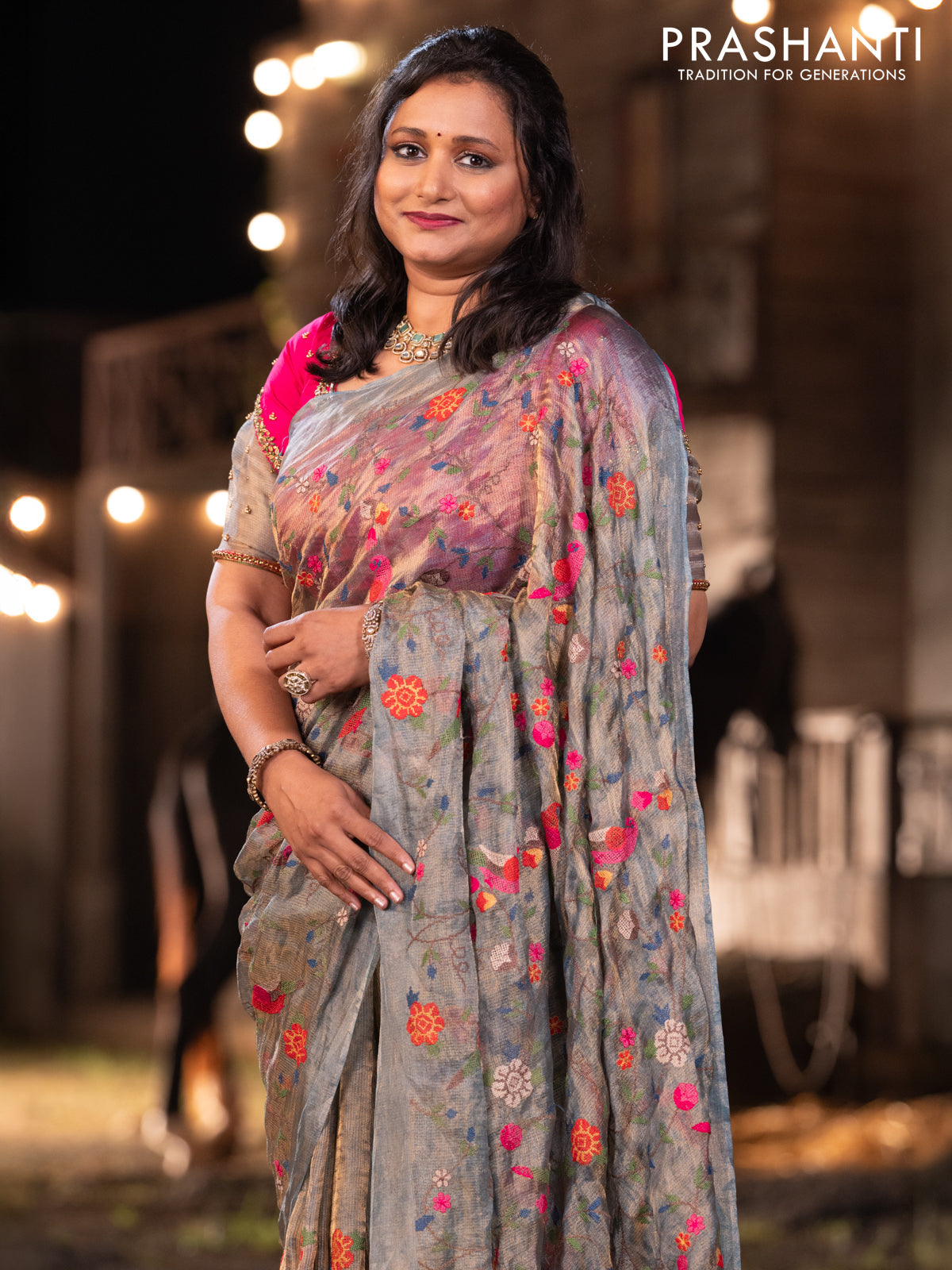 Banarasi tissue silk saree greyish blue with allover embroidery