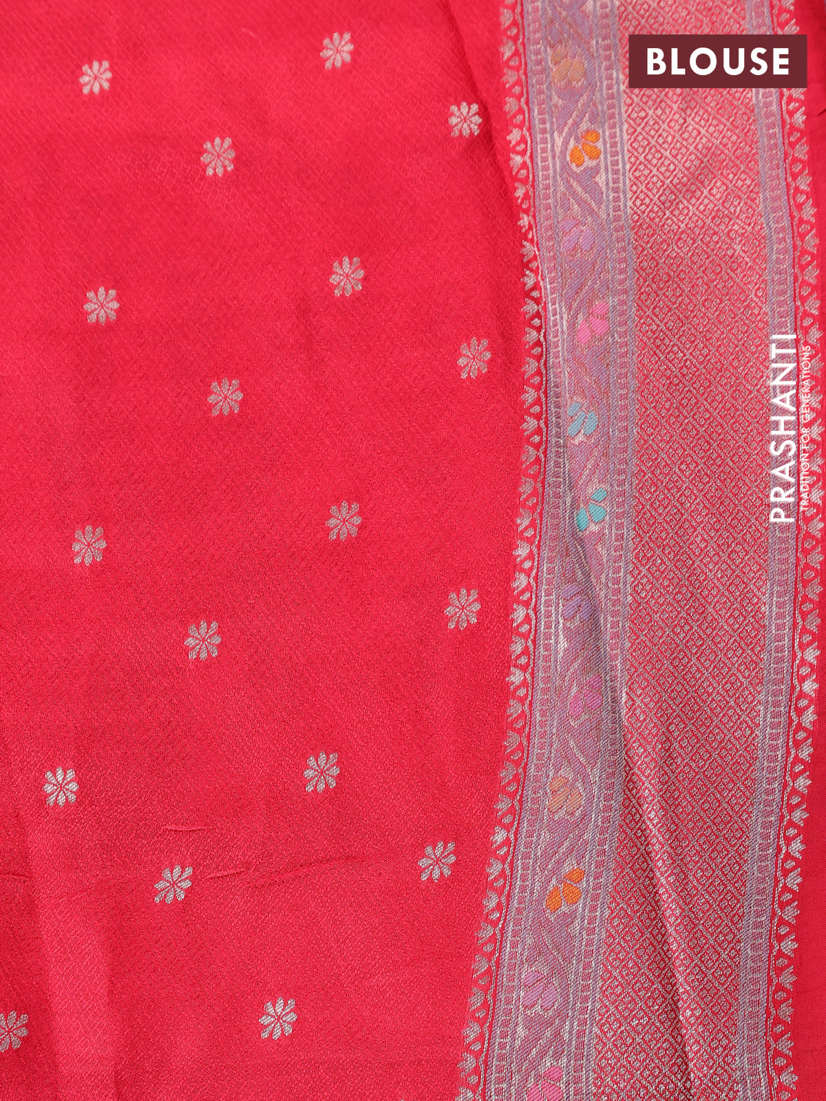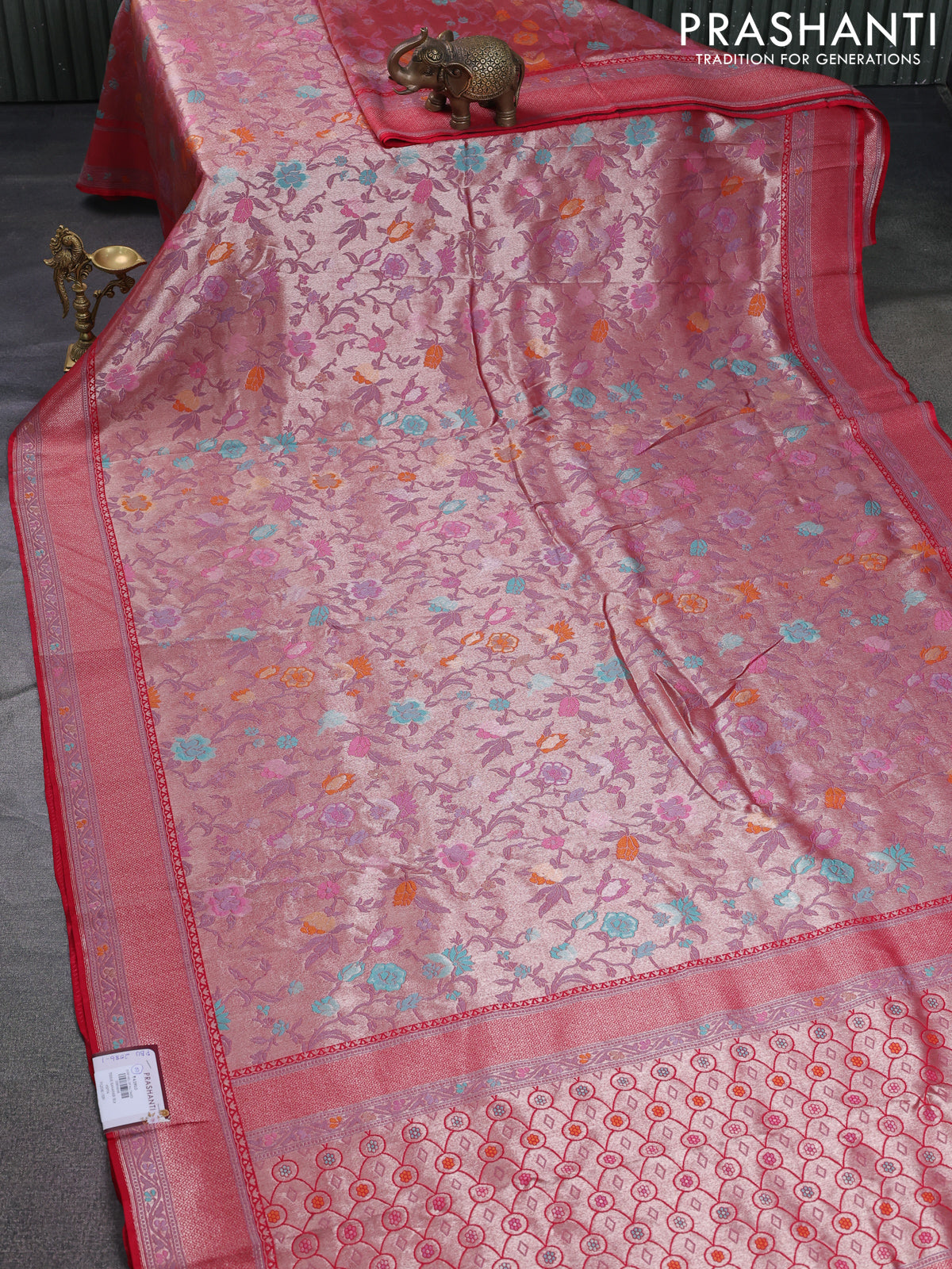 Banarasi tissue silk saree red with allover thread woven floral weaves and silver zari woven border