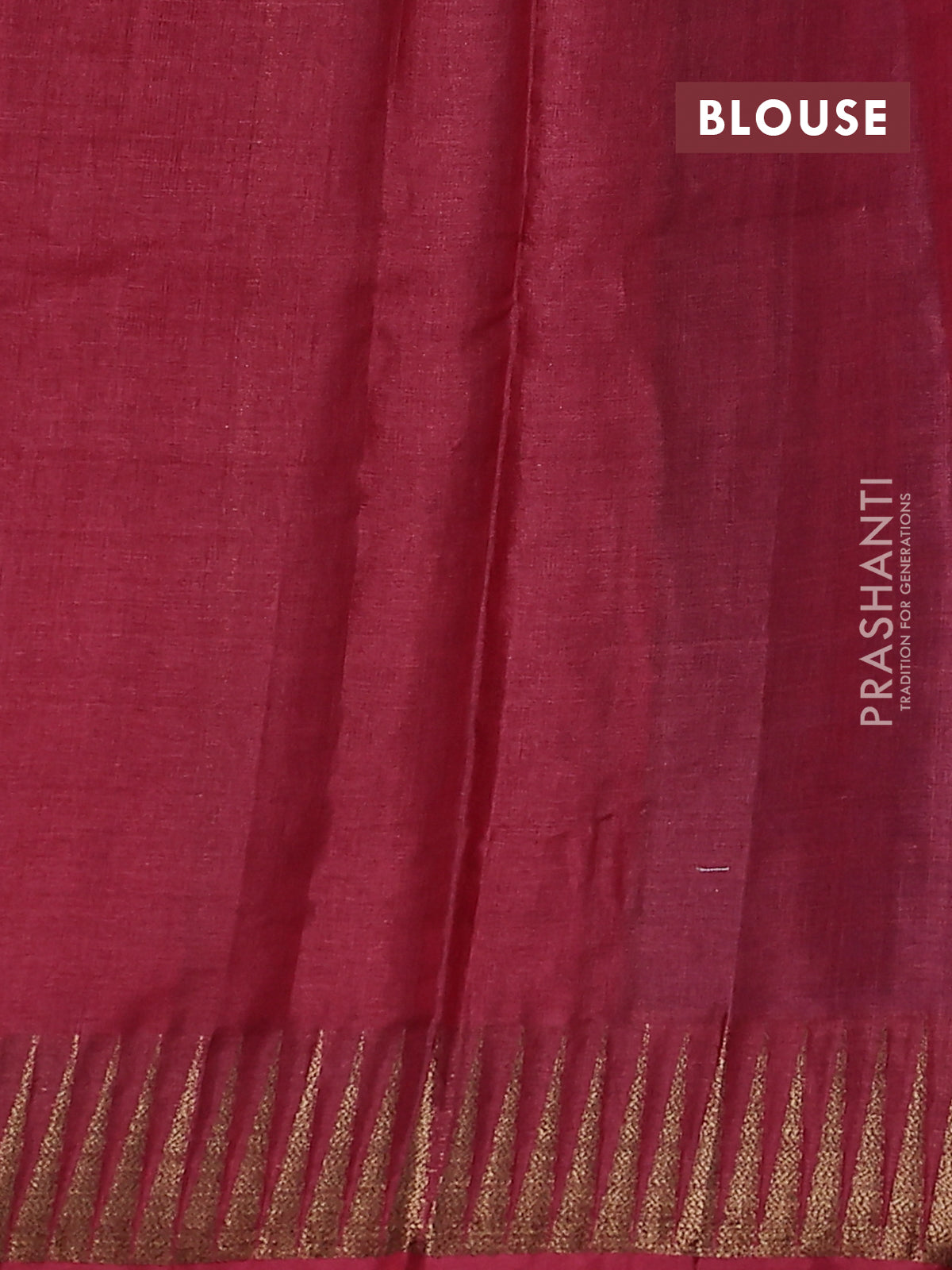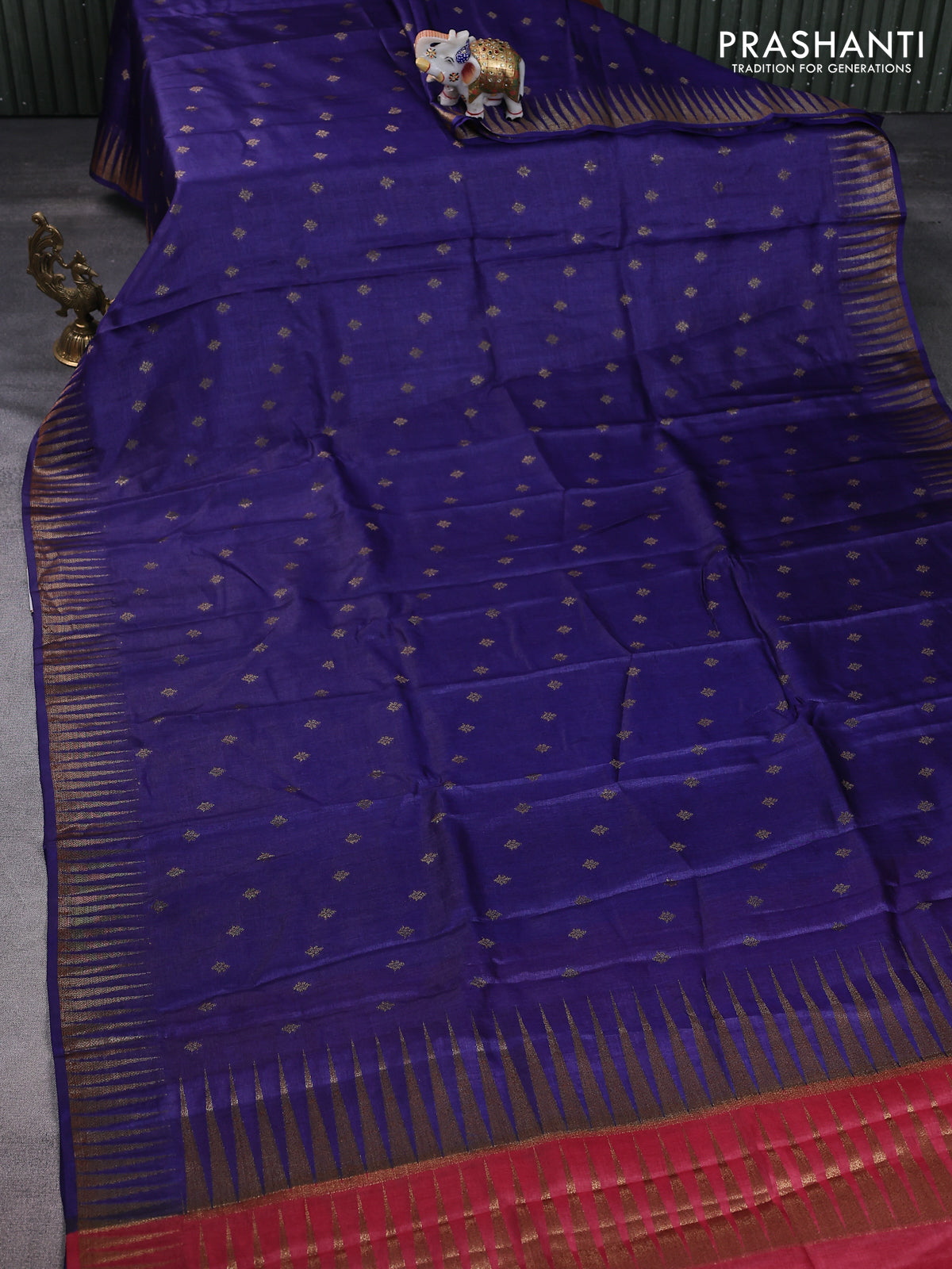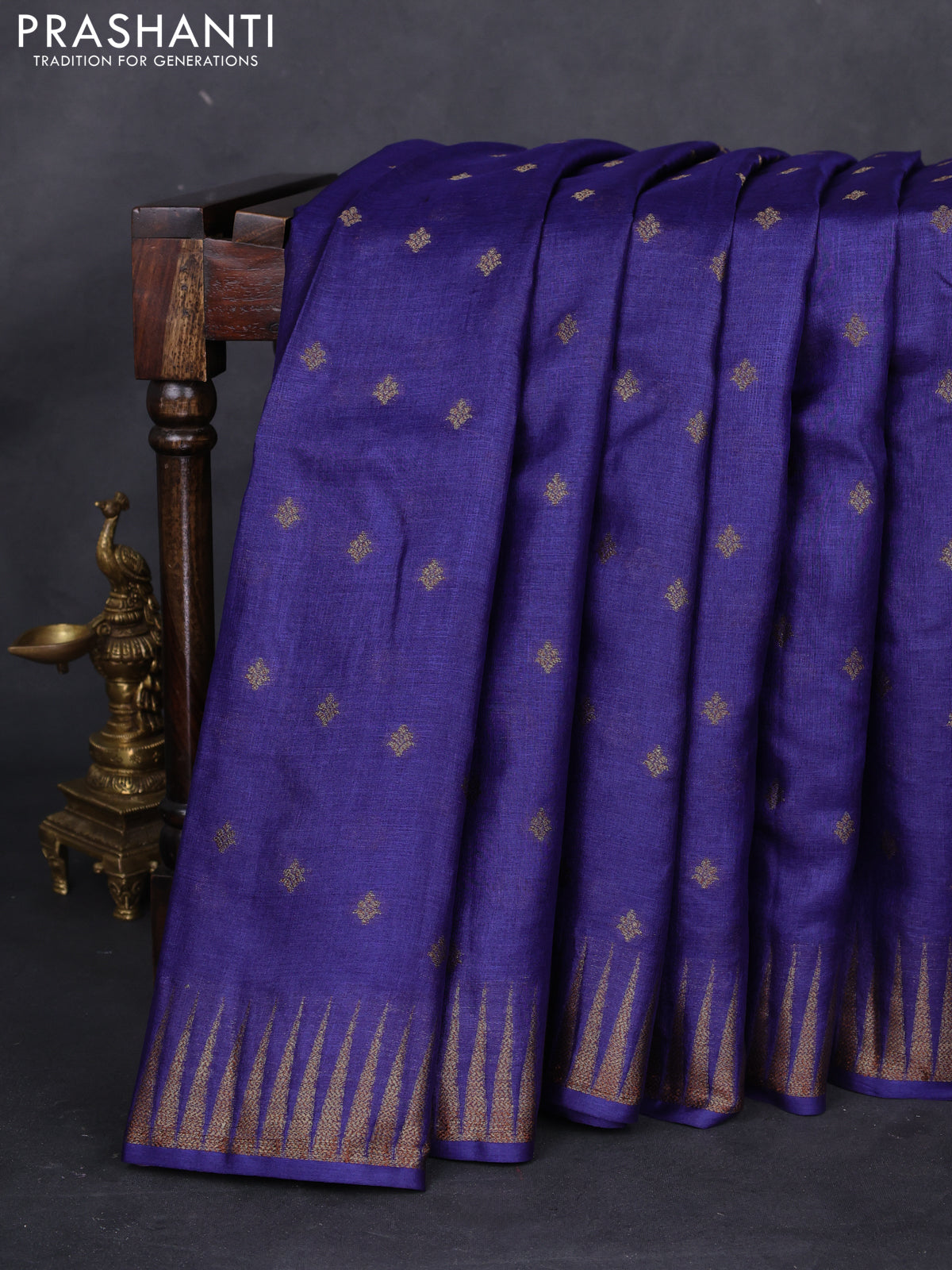 Banarasi tussar silk saree blue and maroon with thread & zari woven buttas and temple design woven border