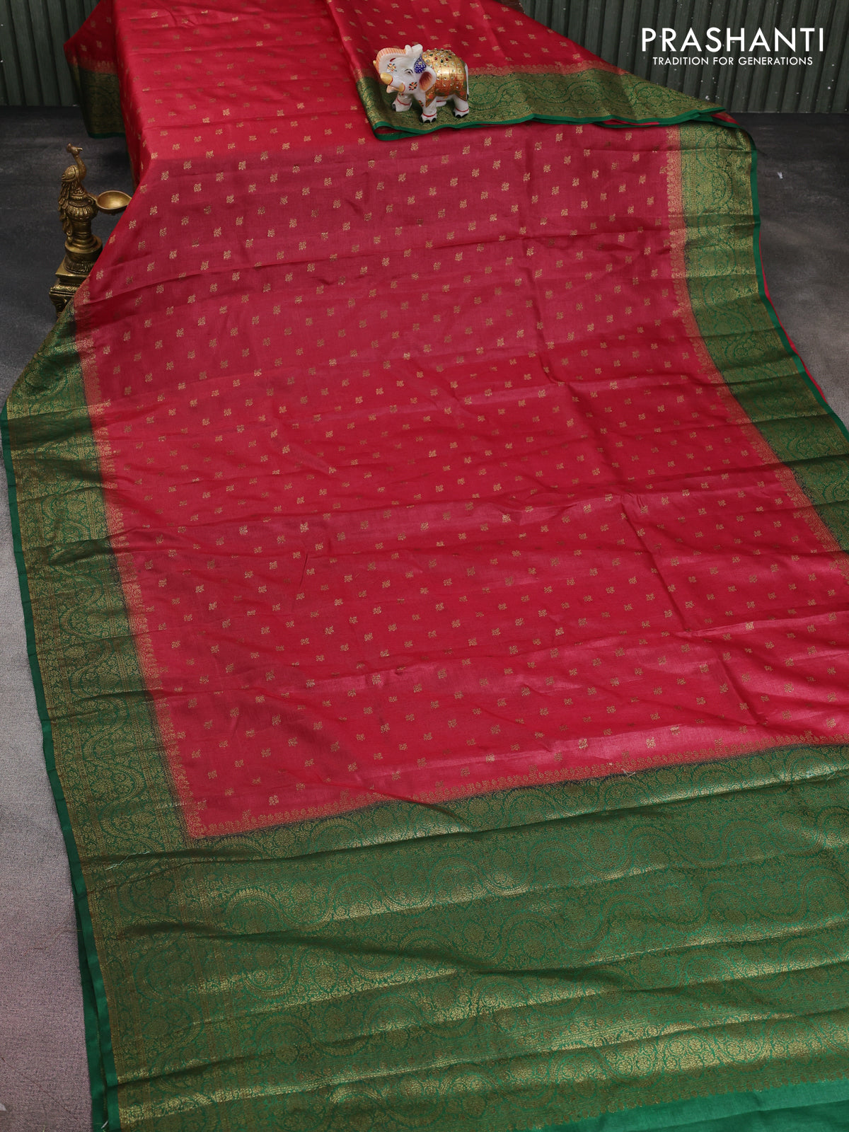 Banarasi tussar silk saree maroon and green with allover thread & zari woven buttas and woven border