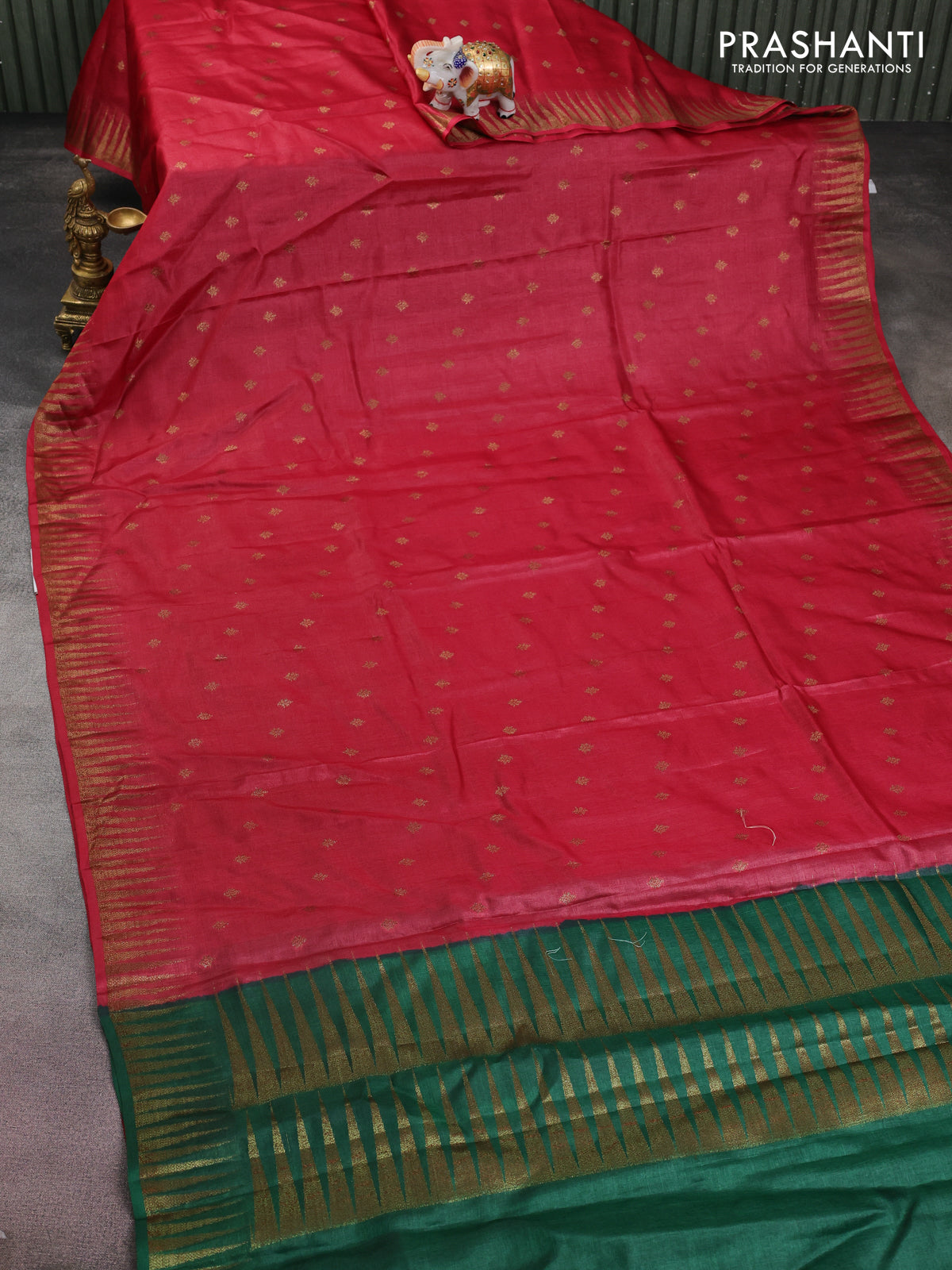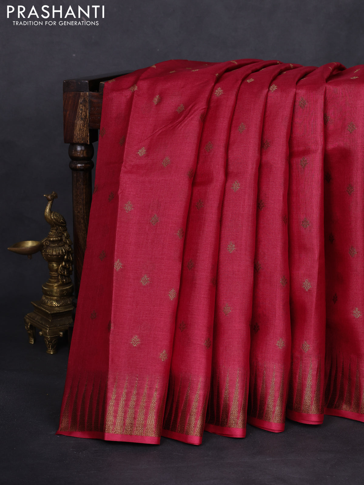 Banarasi tussar silk saree maroon and green with thread & zari woven buttas and temple design woven border