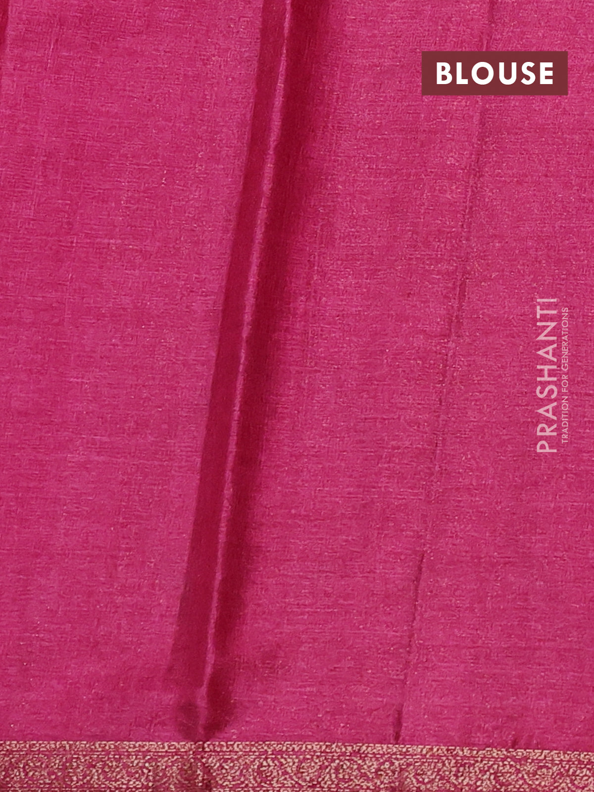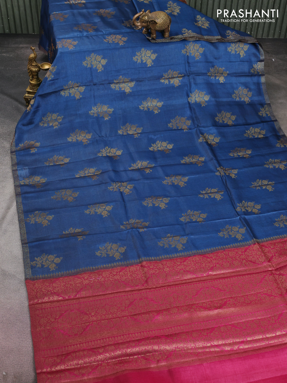 Banarasi tussar silk saree peacock blue and magenta pink with thread & zari woven floral buttas and woven border