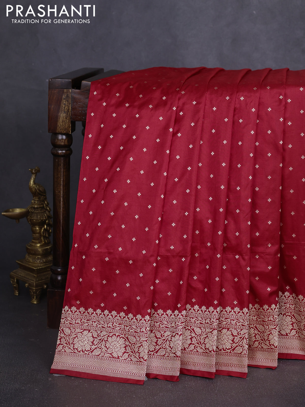 Banarasi Uppada silk sarees blend the finesse of Banarasi artistry with the lightness of Uppada silk, featuring delicate zari motifs and graceful traditional patterns, Lightweight yet exquisitely woven, Silk Mark certified and thoughtfully curated by Prashanti.