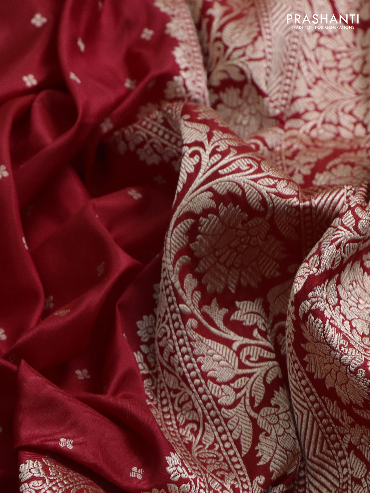 Banarasi uppada partly silk saree red with zari weaves & buttas and zari woven border