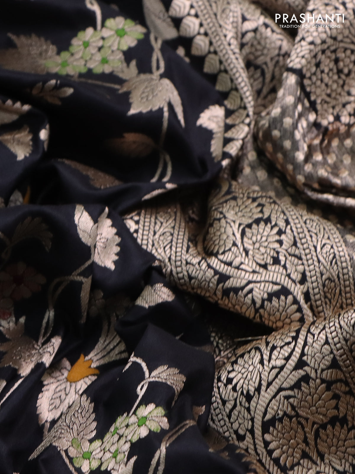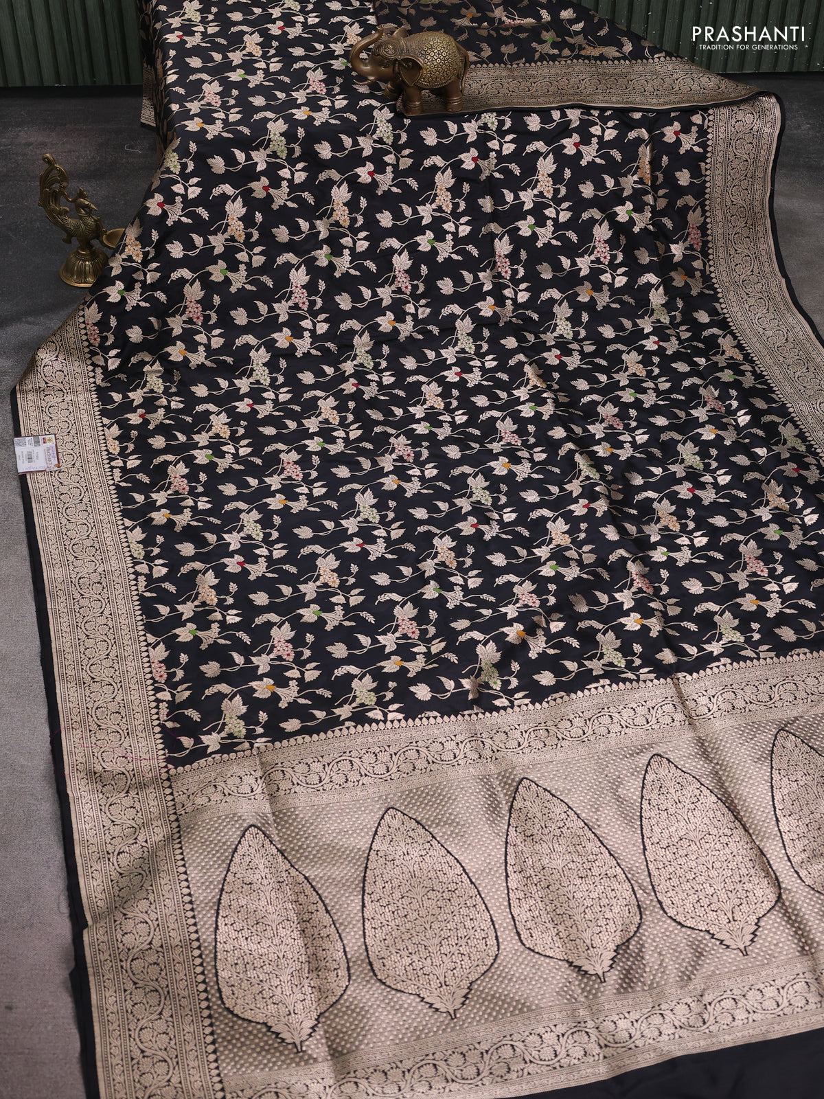 Banarasi uppada silk saree black with allover zari woven brocade weaves and zari woven border