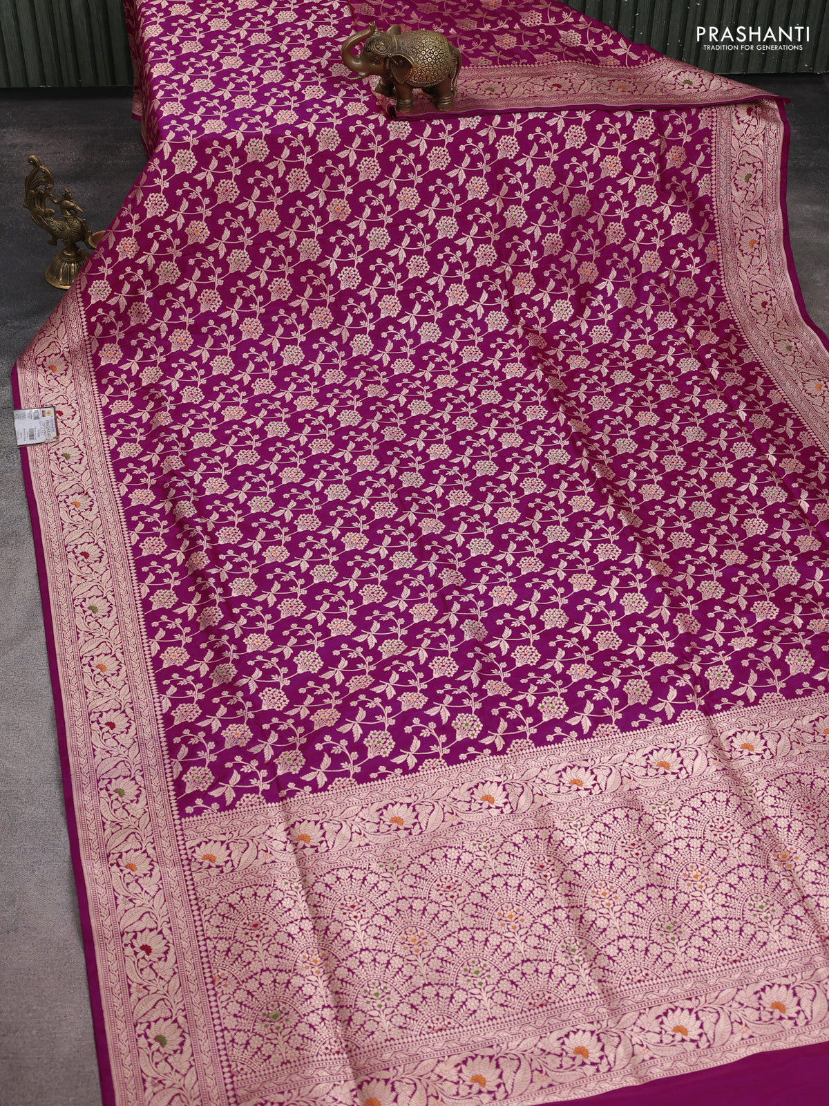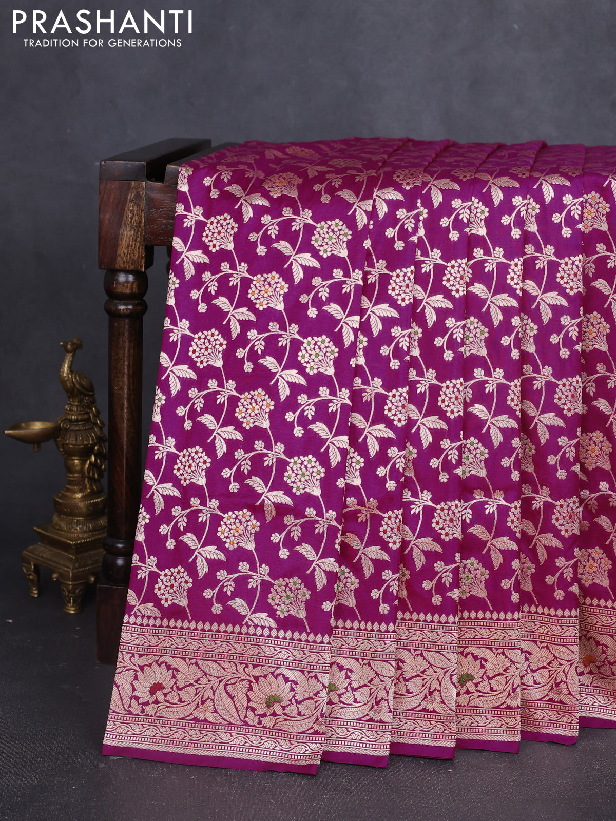 Banarasi uppada silk saree magenta pink with allover zari woven brocade weaves and zari woven border