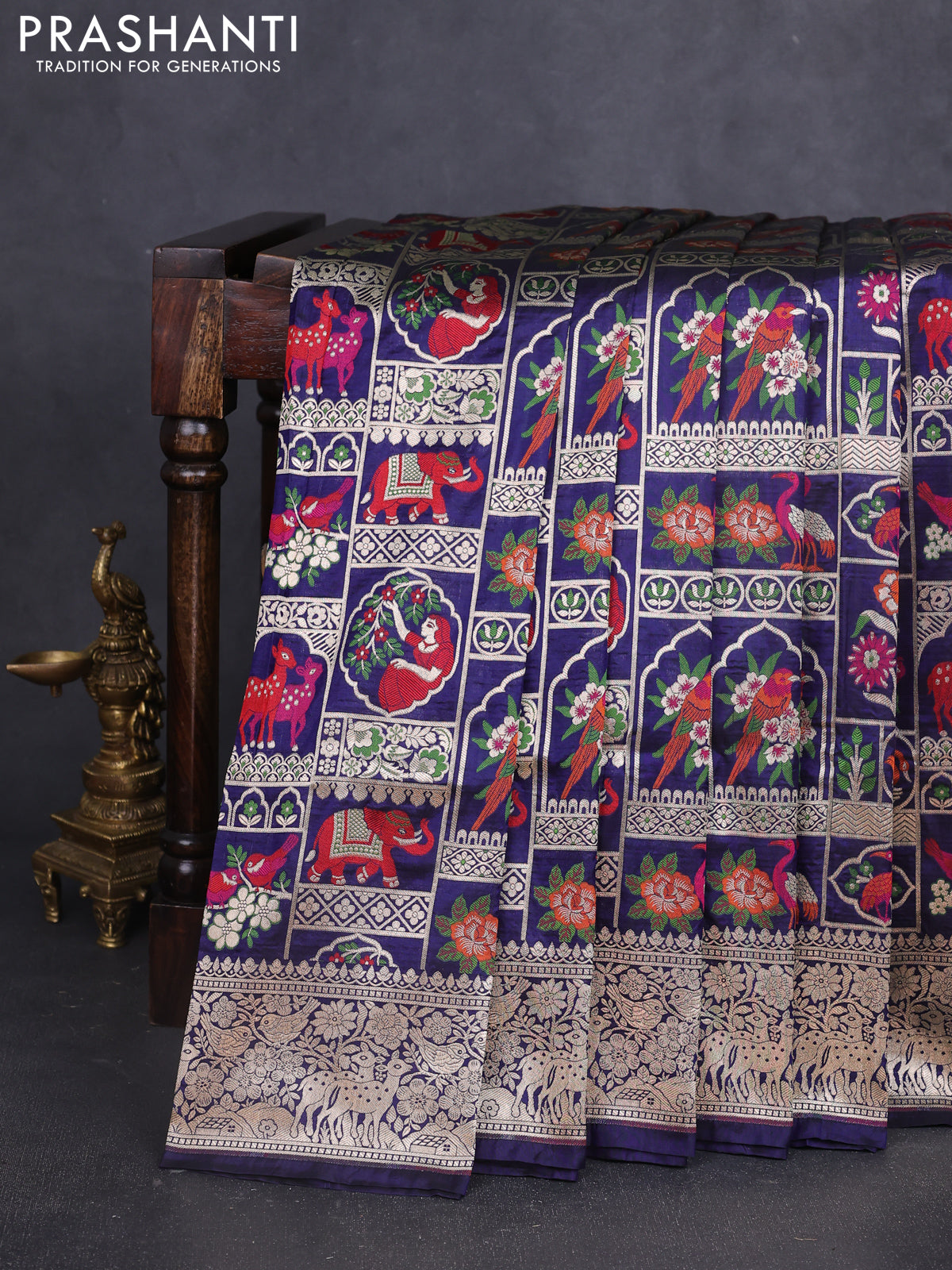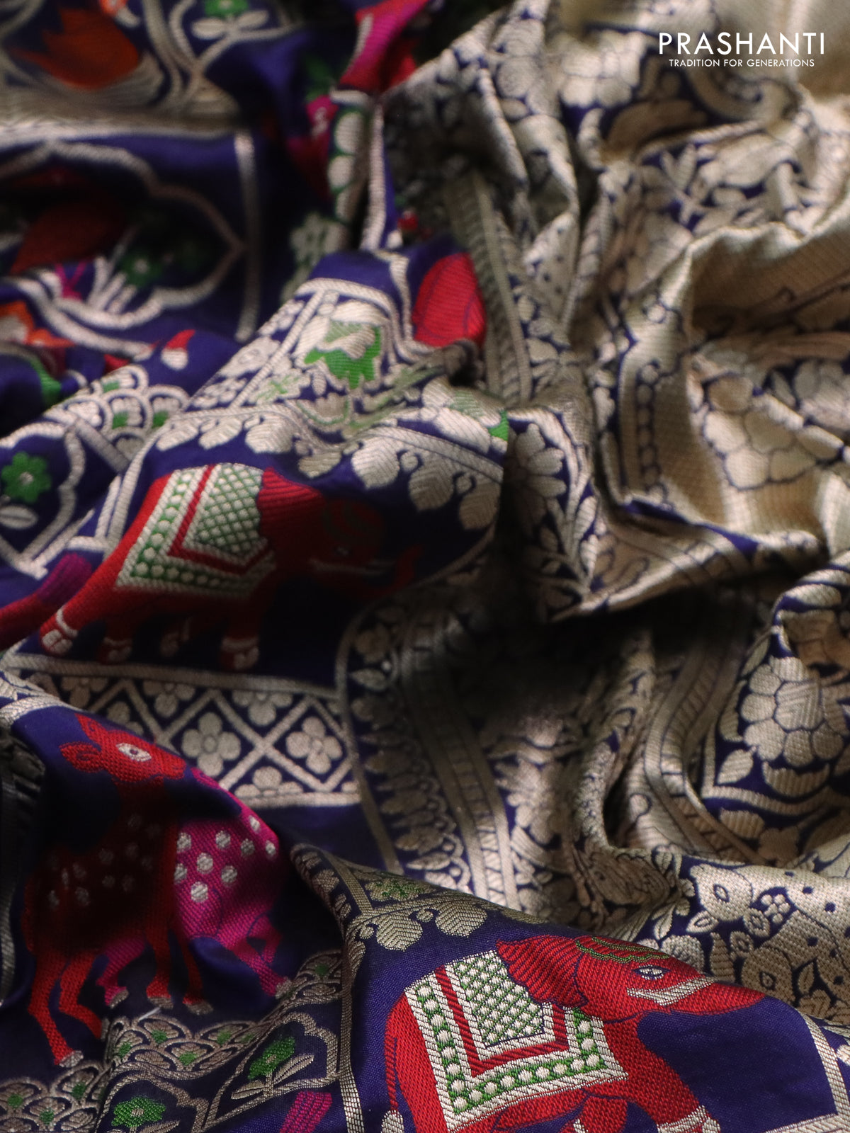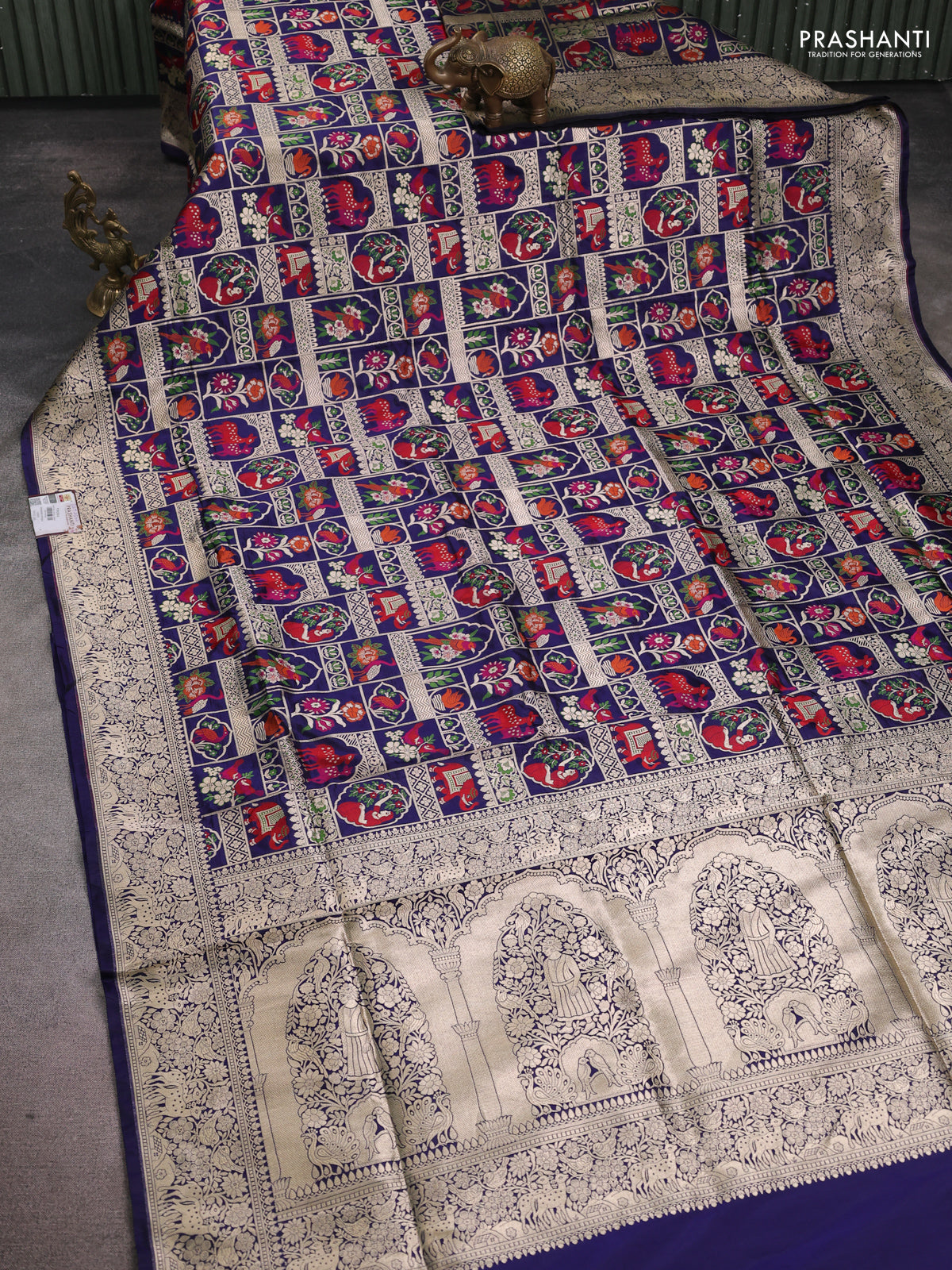 Banarasi uppada silk saree navy blue with allover thread & zari weaves and zari woven border