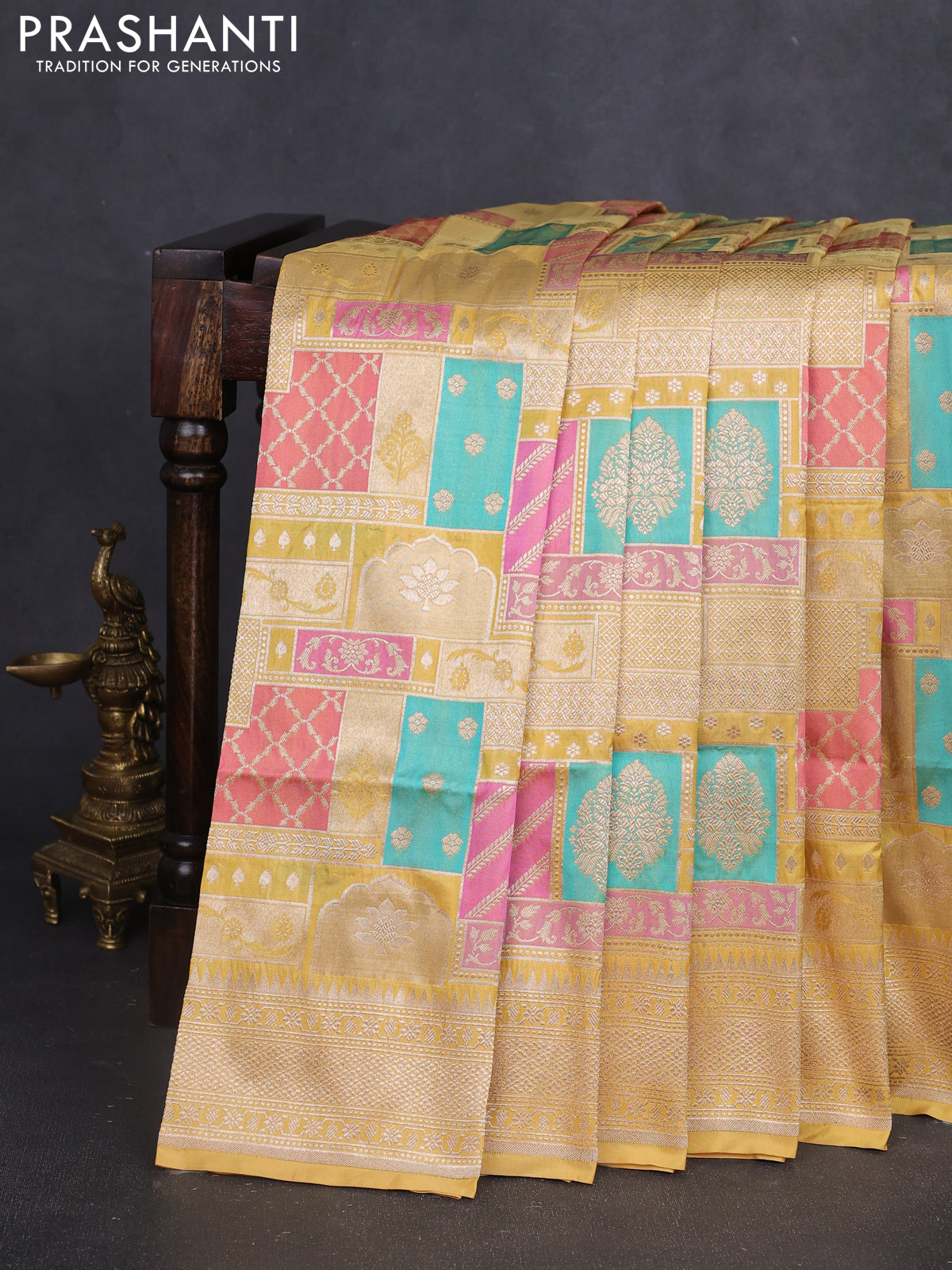 Banarasi uppada silk saree pale yellow with allover zari woven brocade weaves and zari woven border