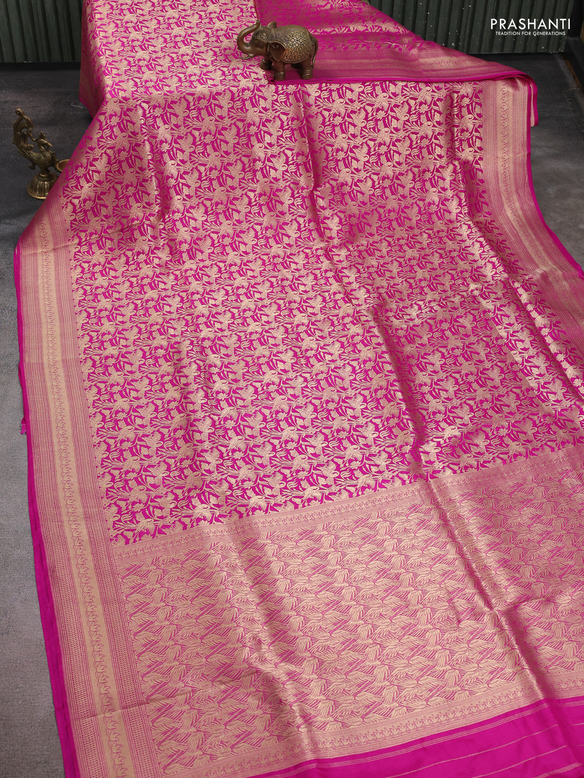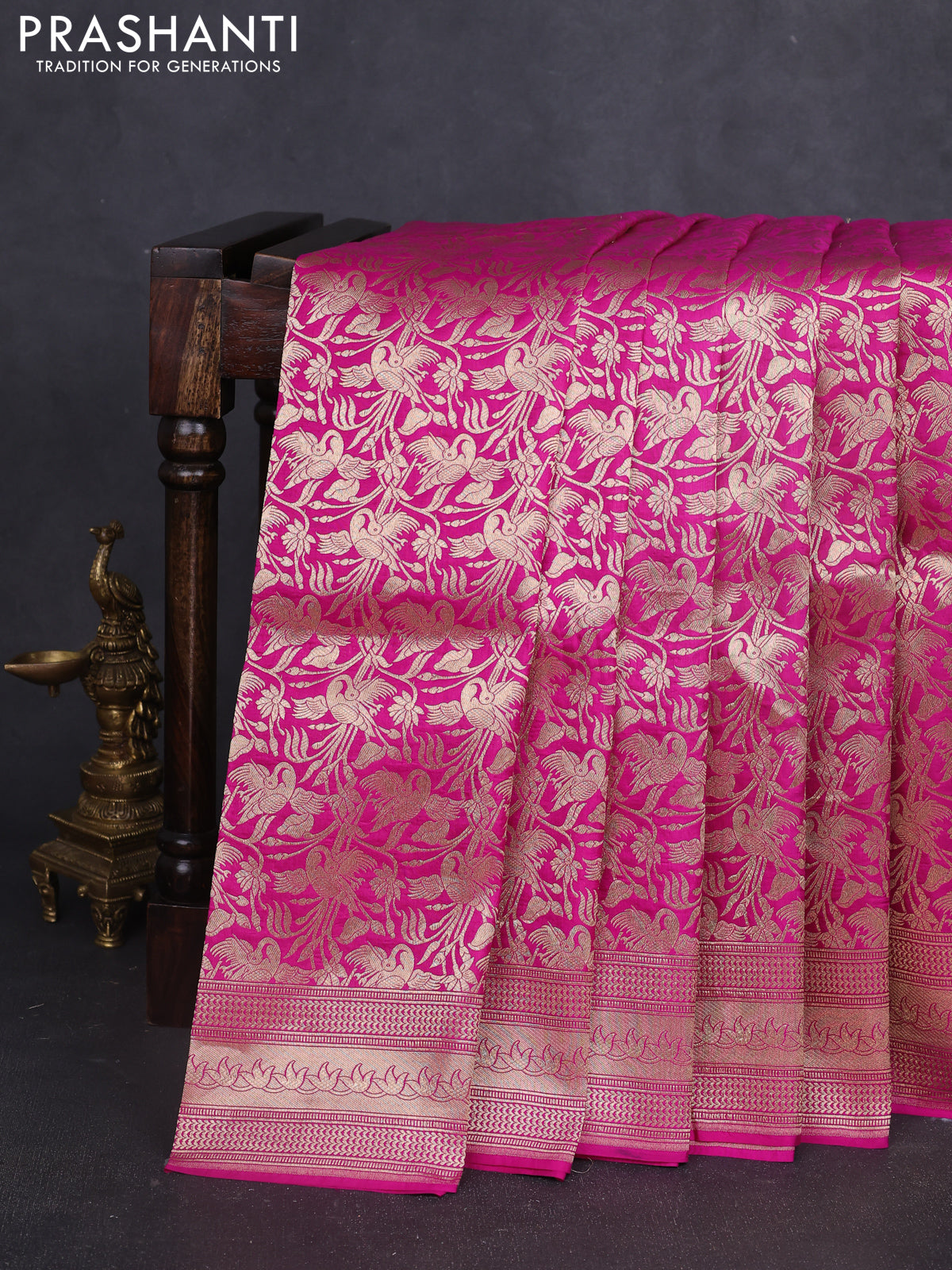 Banarasi uppada silk saree pink with allover zari woven brocade weaves and zari woven border
