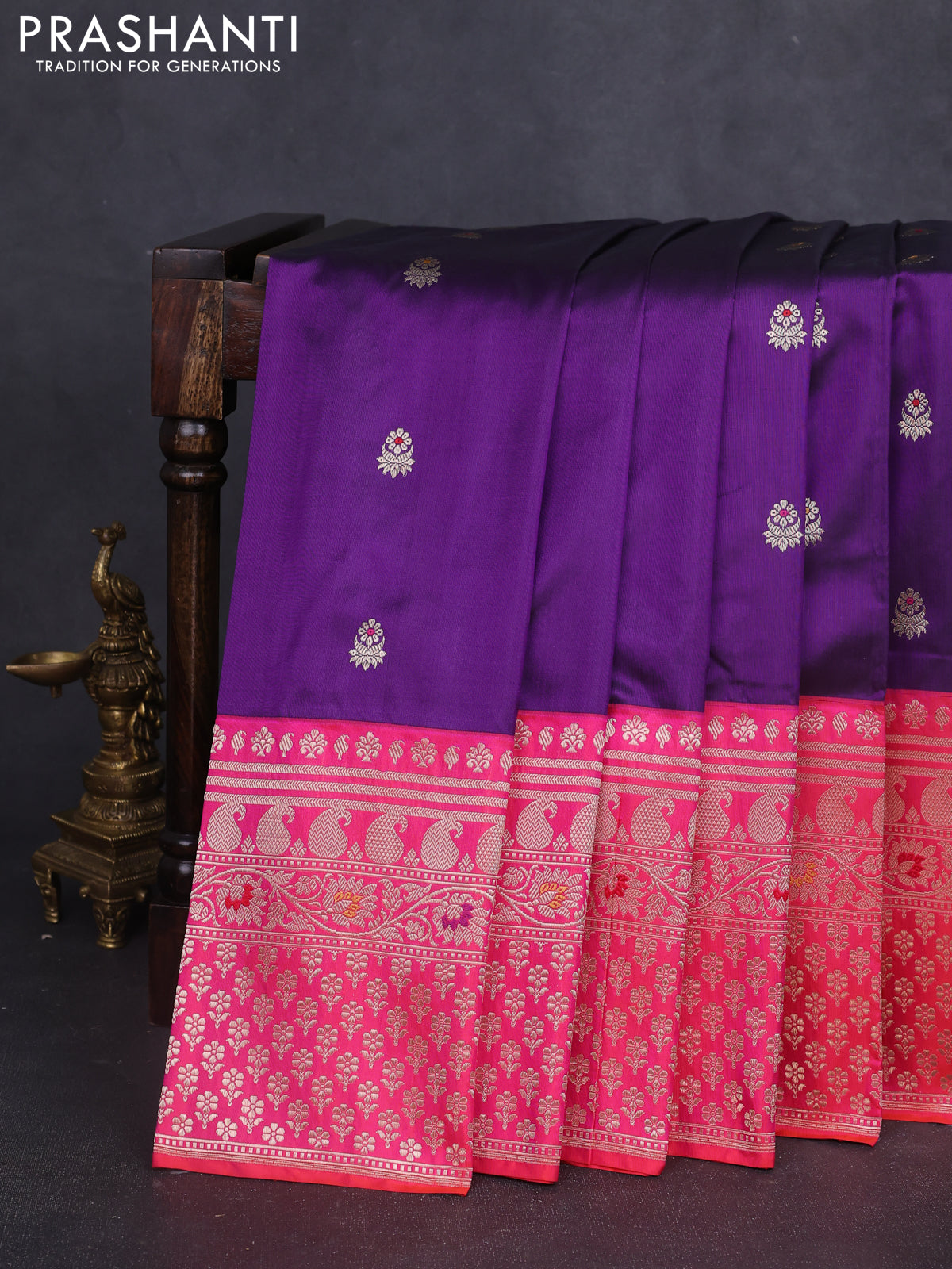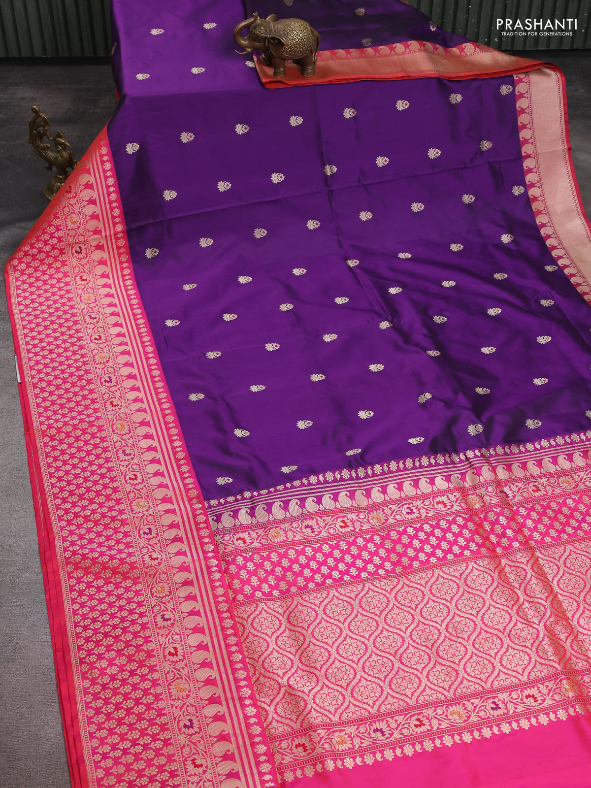 Banarasi uppada silk saree purple and pink with zari woven buttas and long zari woven border