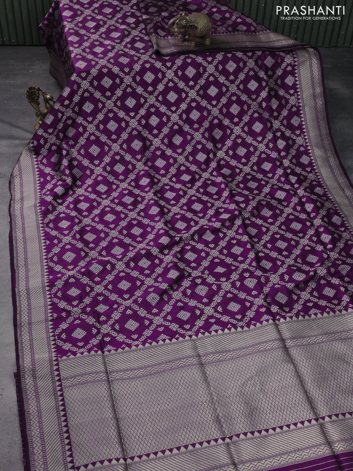 Banarasi uppada silk saree purple with allover zari woven brocade weaves and zari woven border