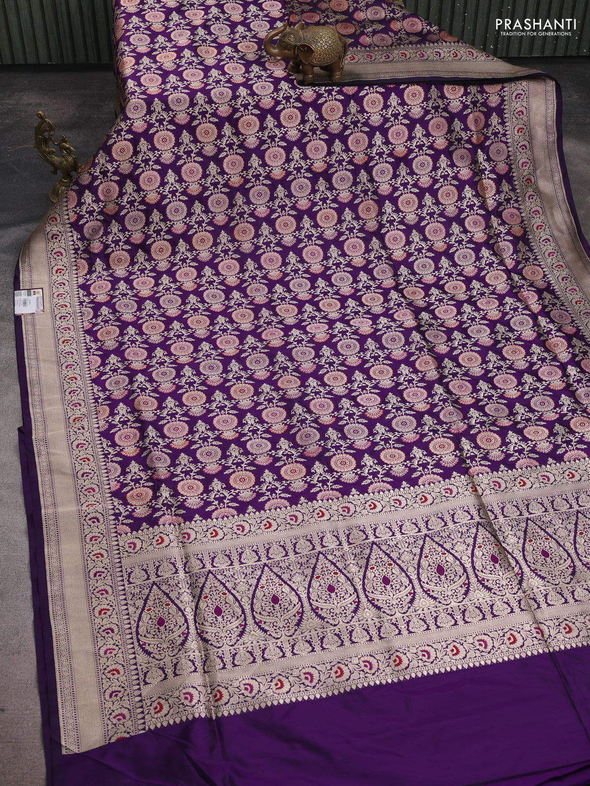 Banarasi uppada silk saree purple with allover zari woven brocade weaves and zari woven border