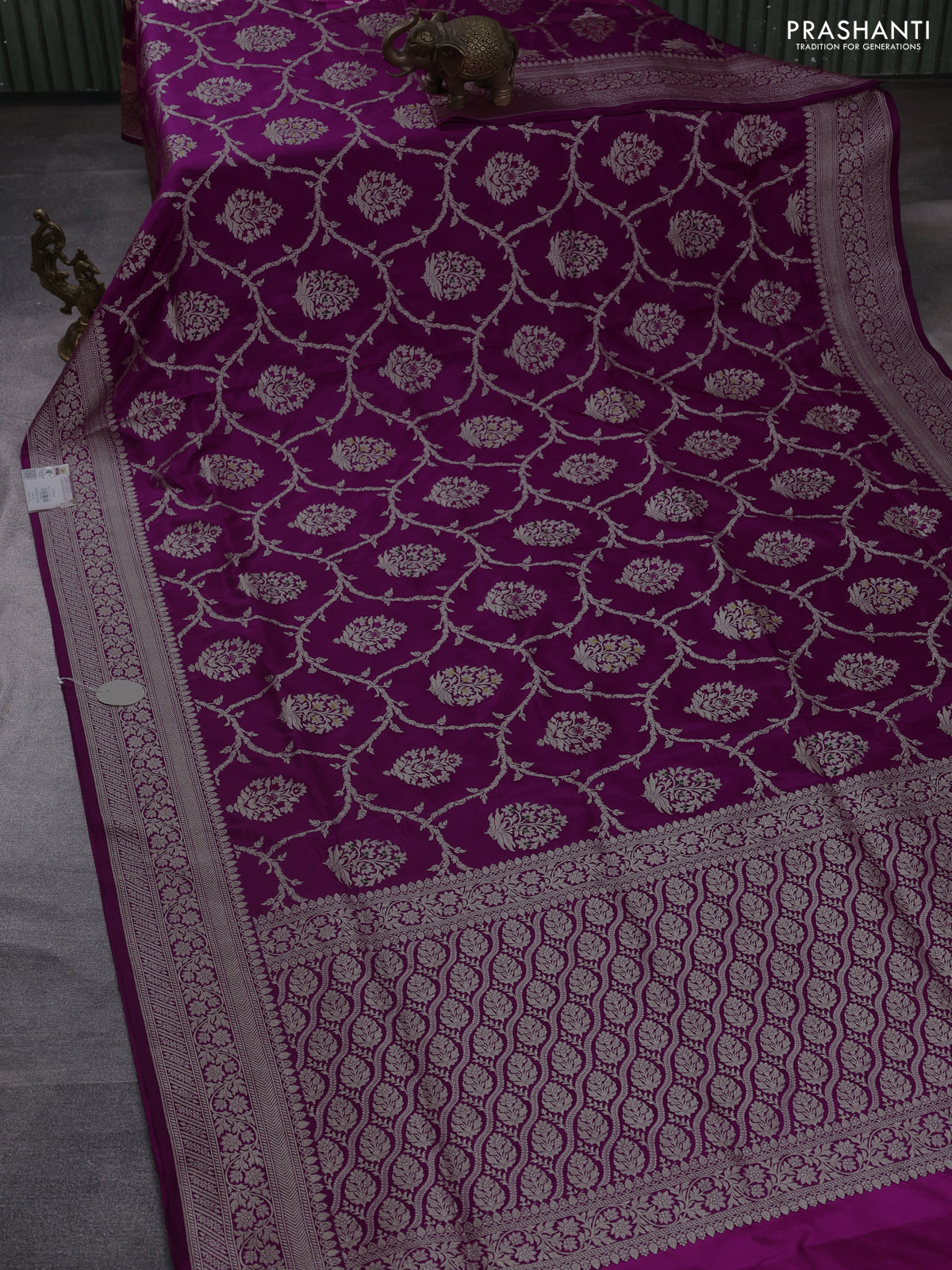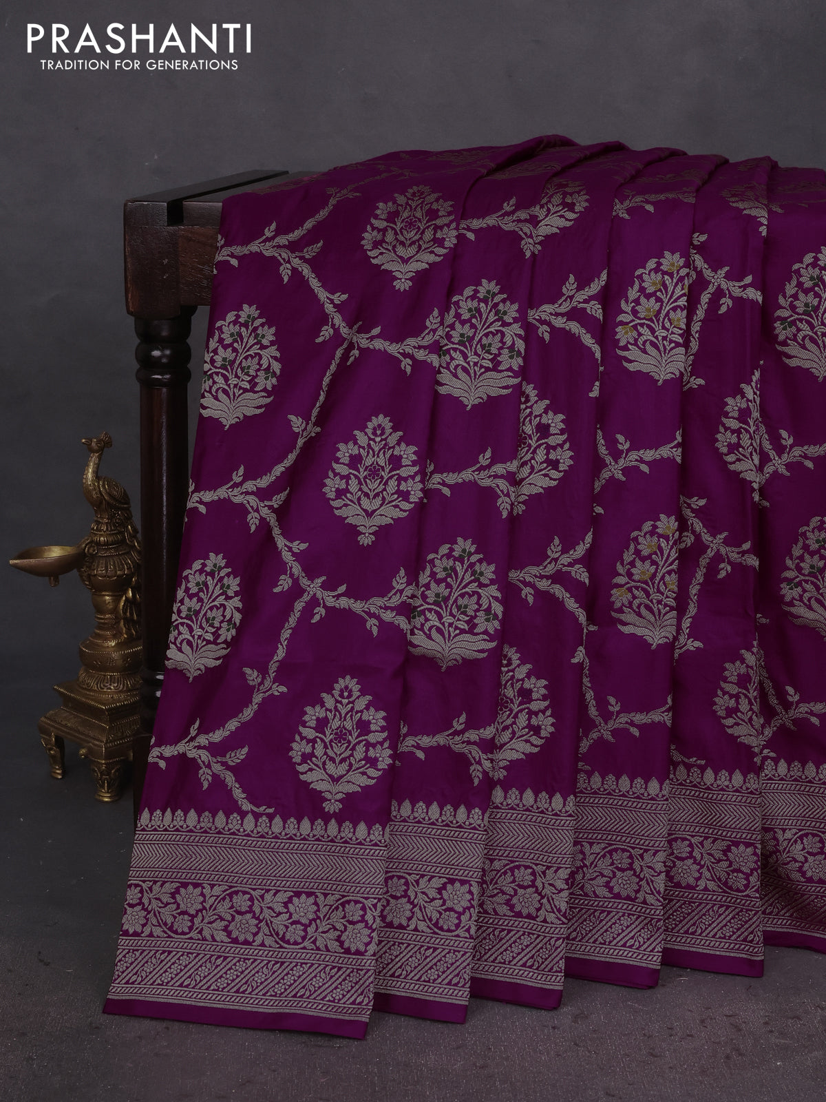 Banarasi uppada silk saree purple with allover zari woven brocade weaves and zari woven border