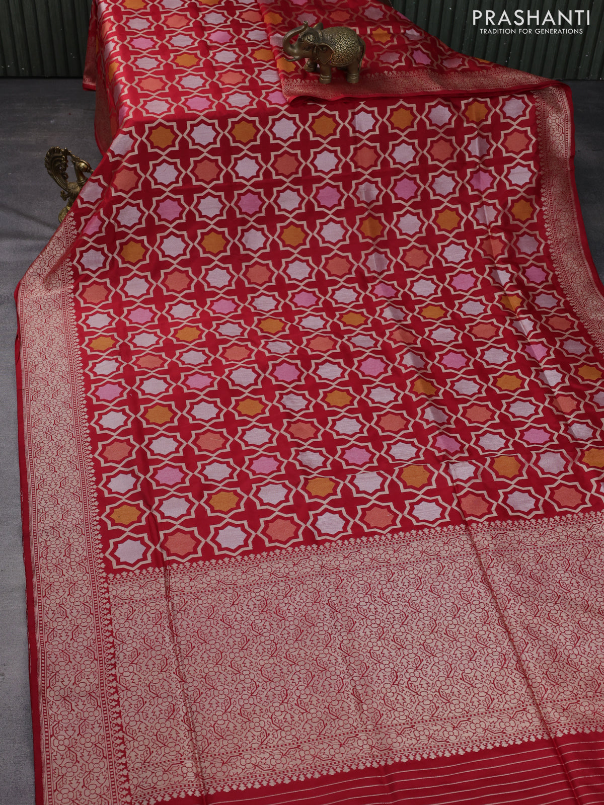 Banarasi uppada silk saree red with allover zari woven geometric brocade weaves and zari woven border