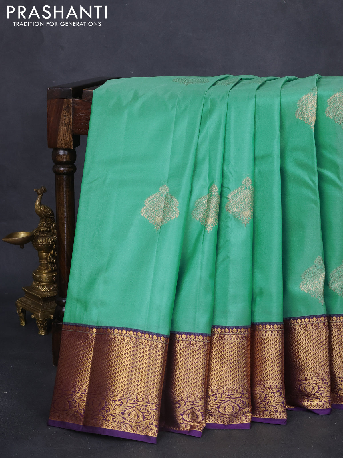 Bangalori silk saree teal blue and violet with zari woven buttas and rich zari woven border and Butta style