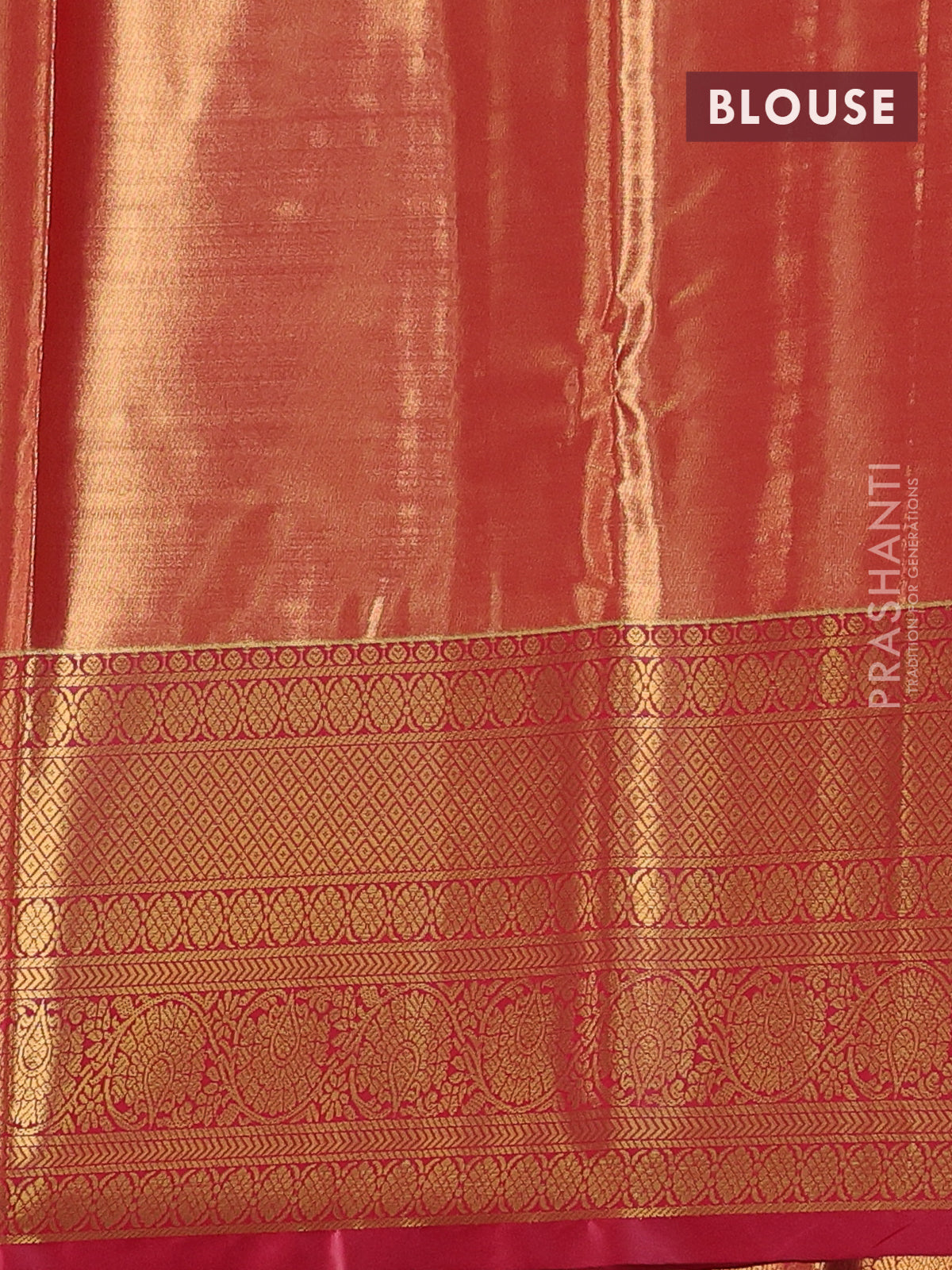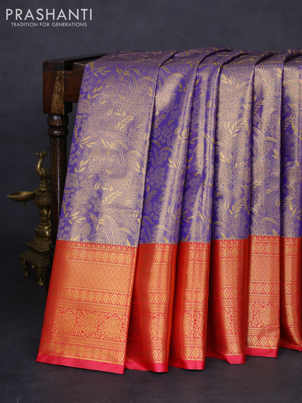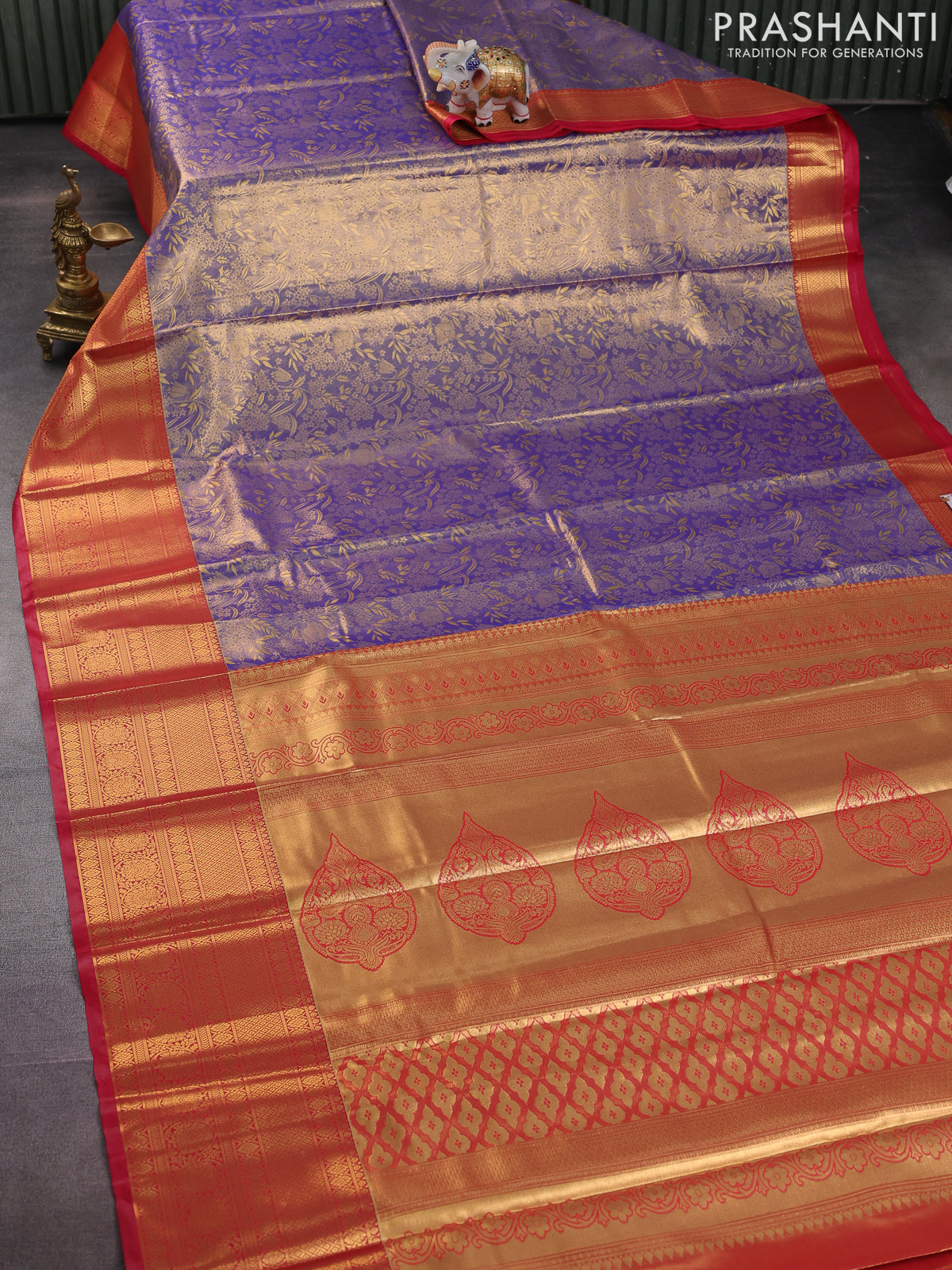 Bangalori tissue silk saree dual shade of blue and reddish pink with allover zari woven brocade weaves and long zari woven border