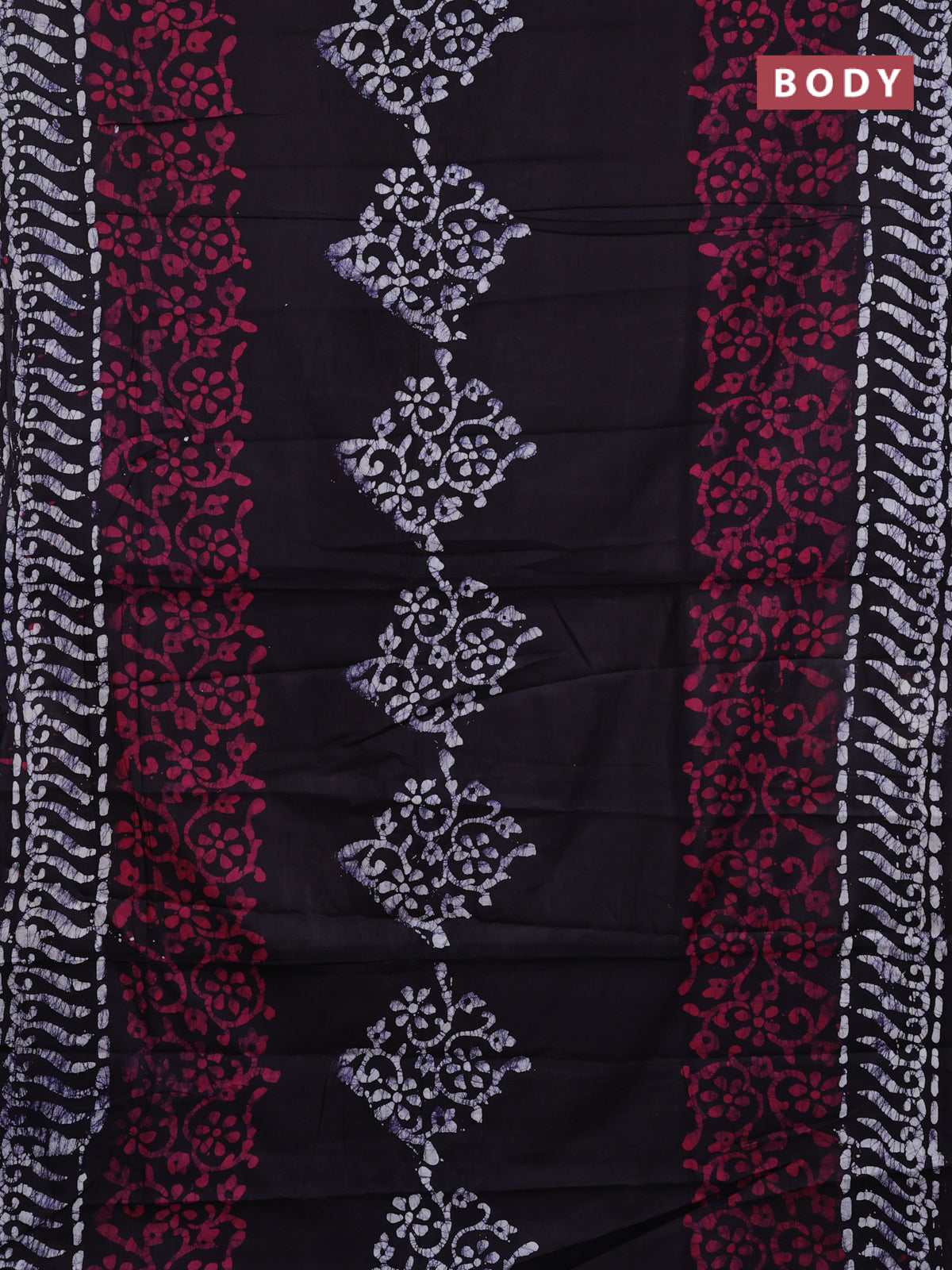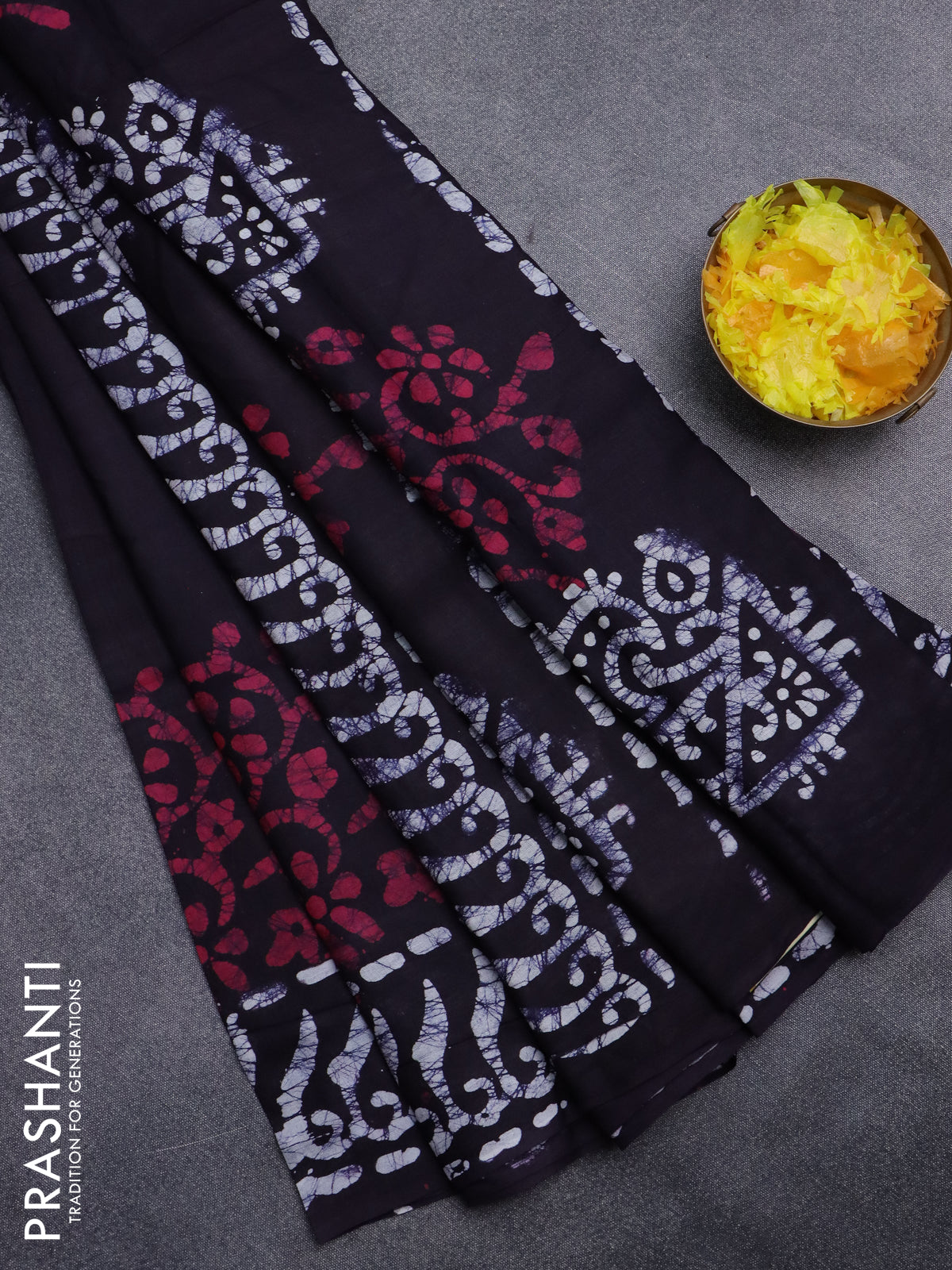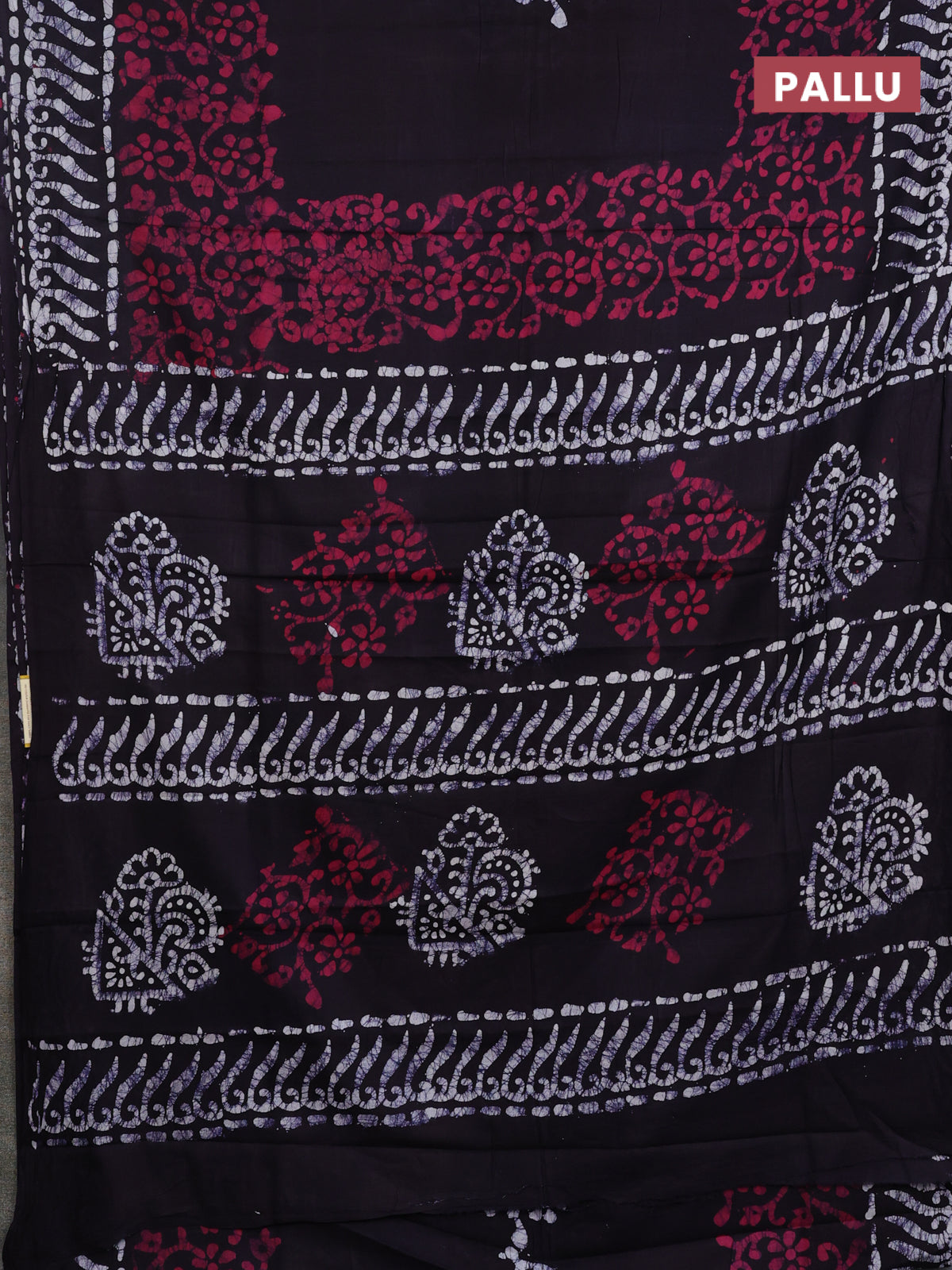 Batik cotton saree deep jamun shade and pink with batik prints and long printed border