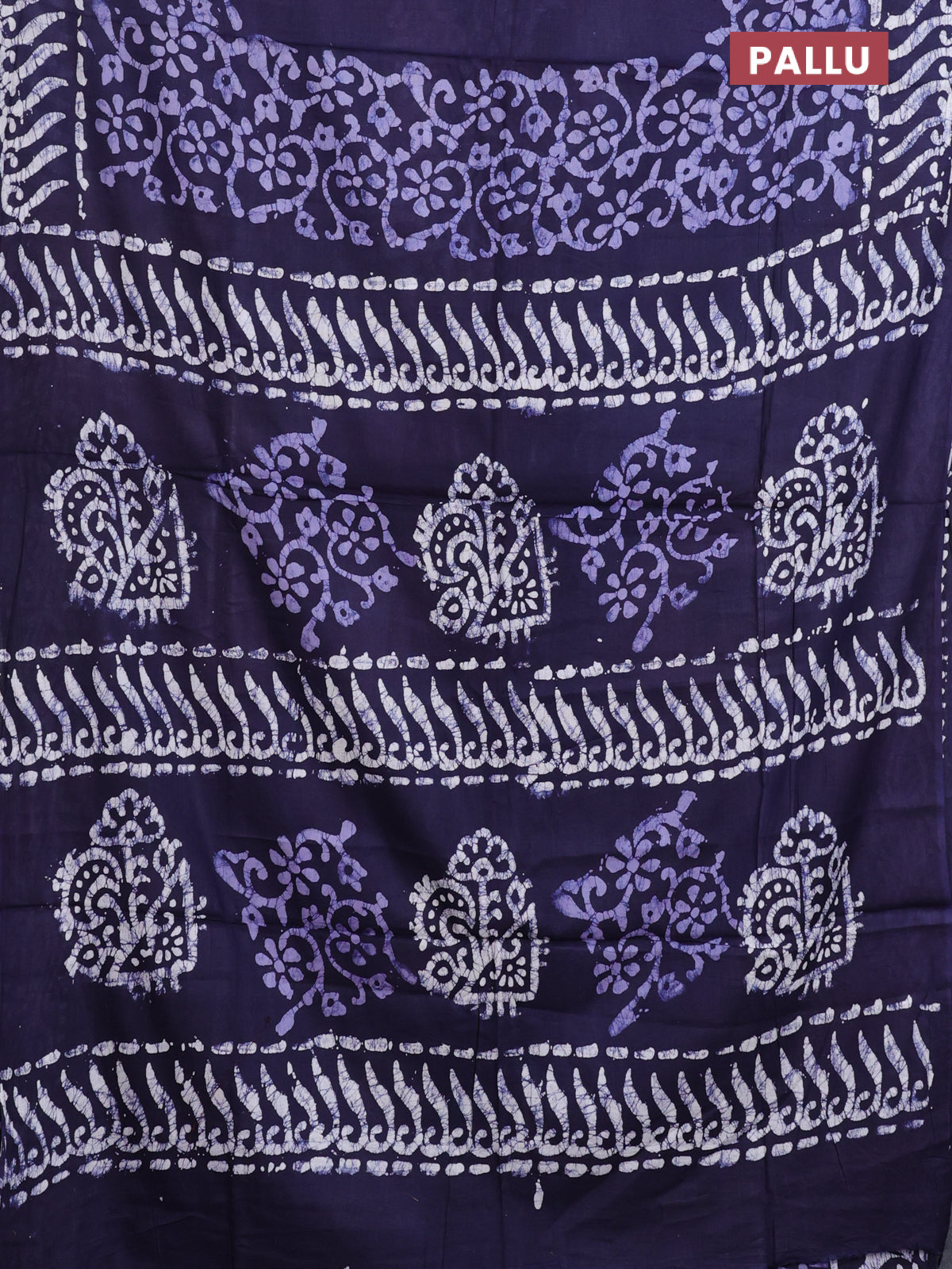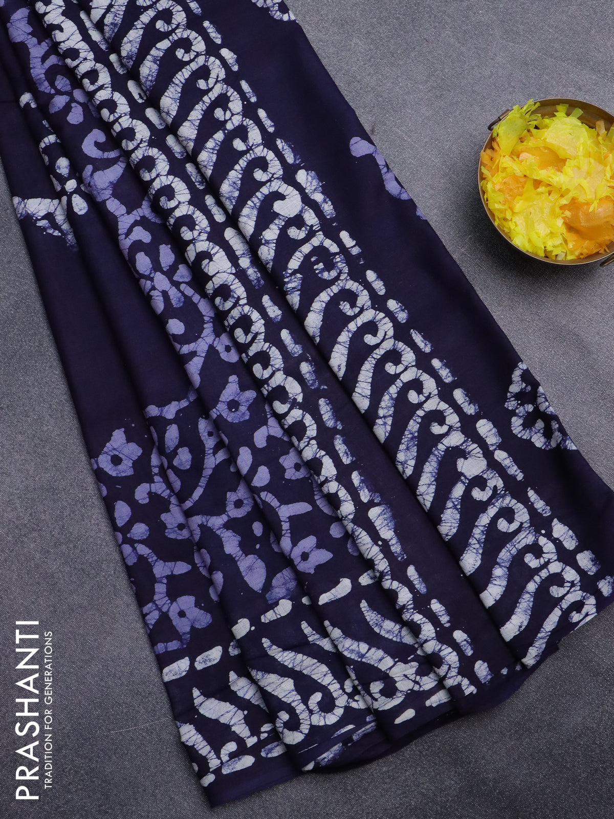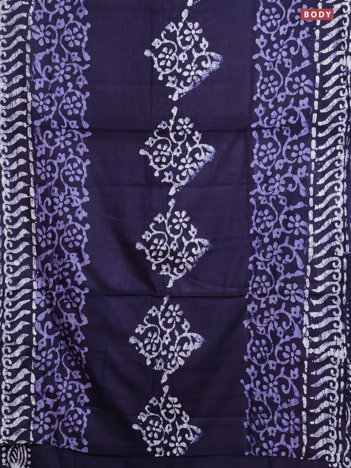 Batik cotton saree deep navy blue with batik prints and long printed border