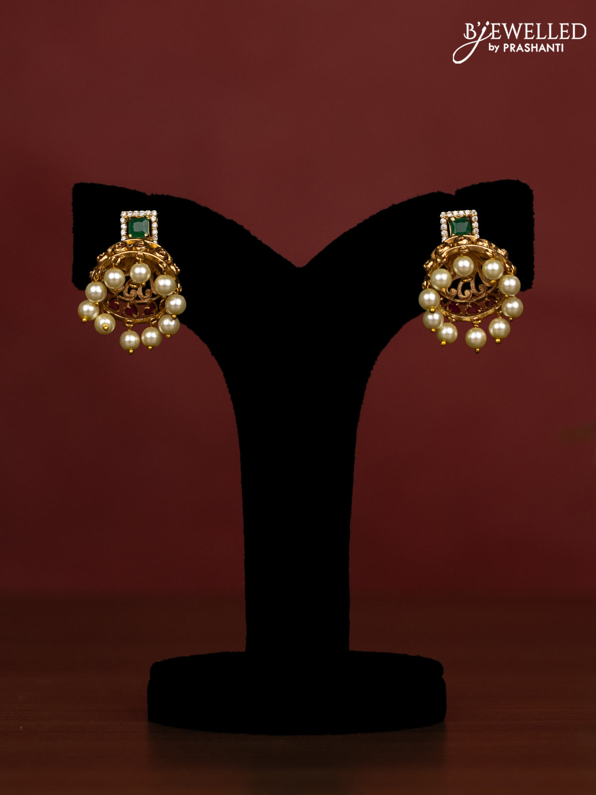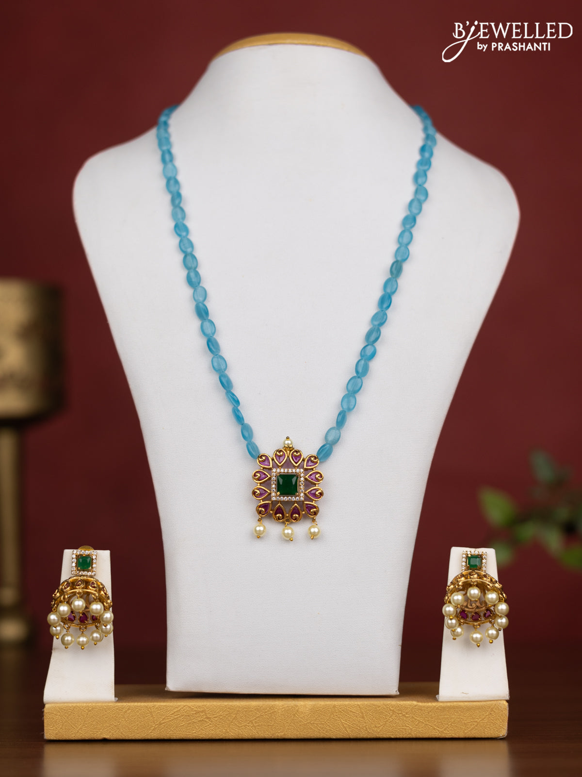 Beaded light blue Necklace with ruby and cz stones and pearl hangings