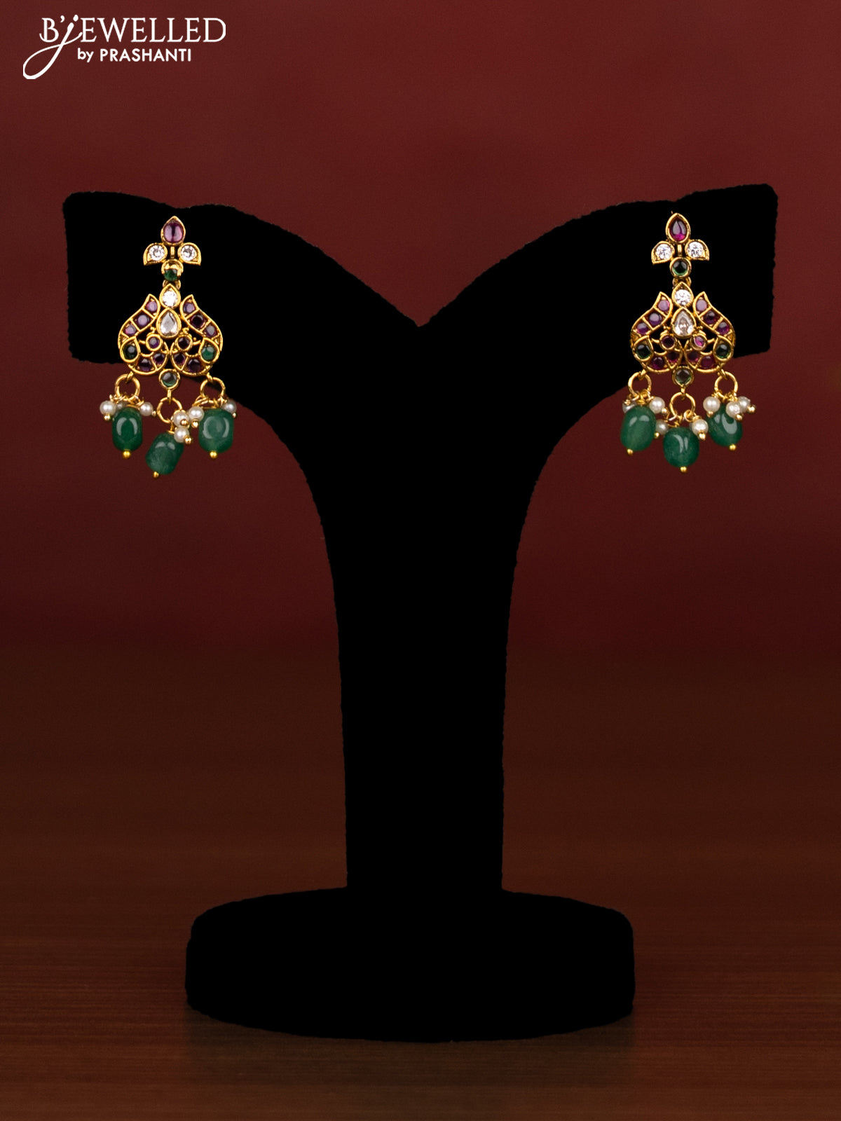 Beaded multilayer green necklace with kemp,cz stones and pearl hangings