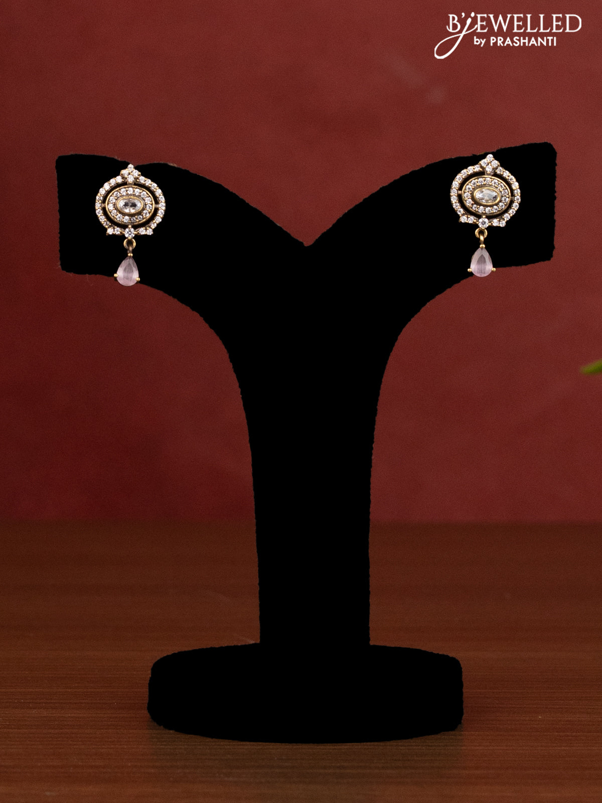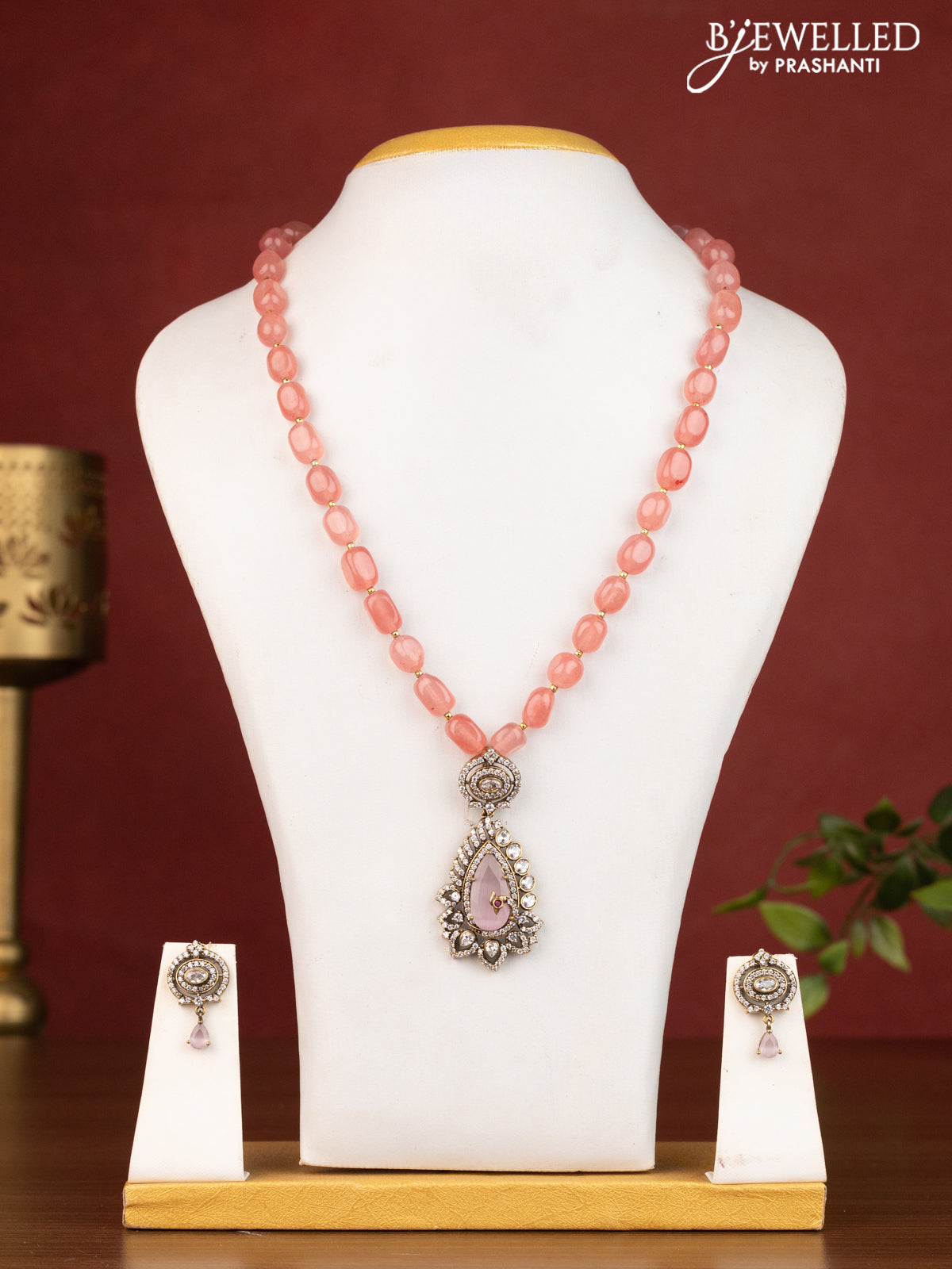 Beaded pink necklace peacock design with cz stones in victorian finish