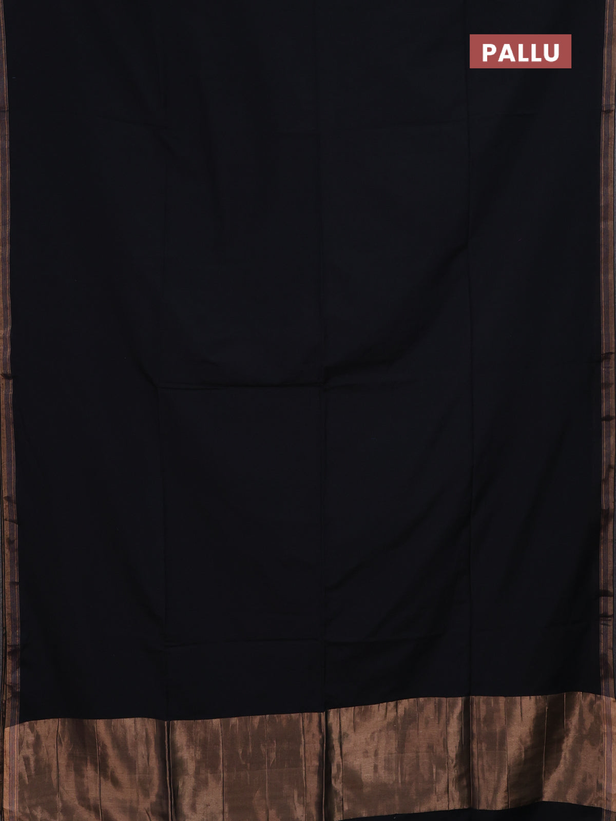 Bengal soft cotton saree black and blue with plain body and zari woven border