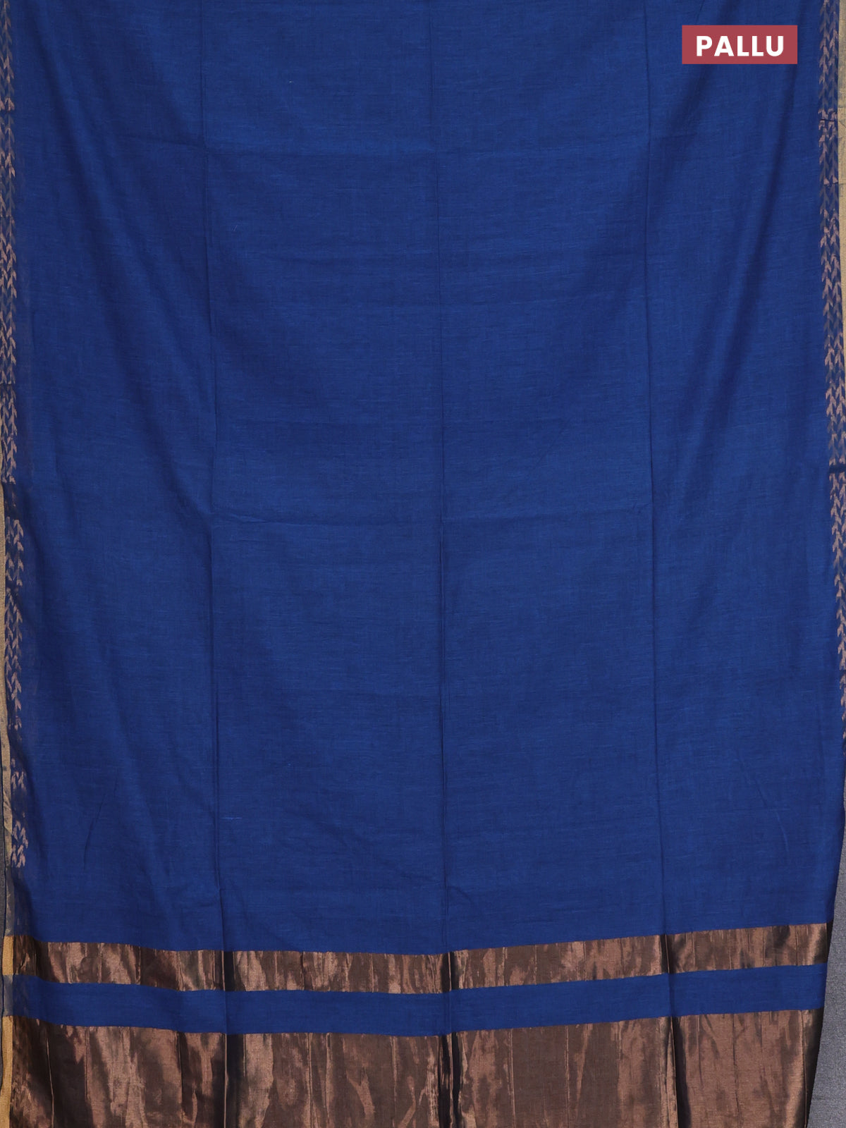 Bengal soft cotton saree blue and dark mustard with plain body and zari woven border