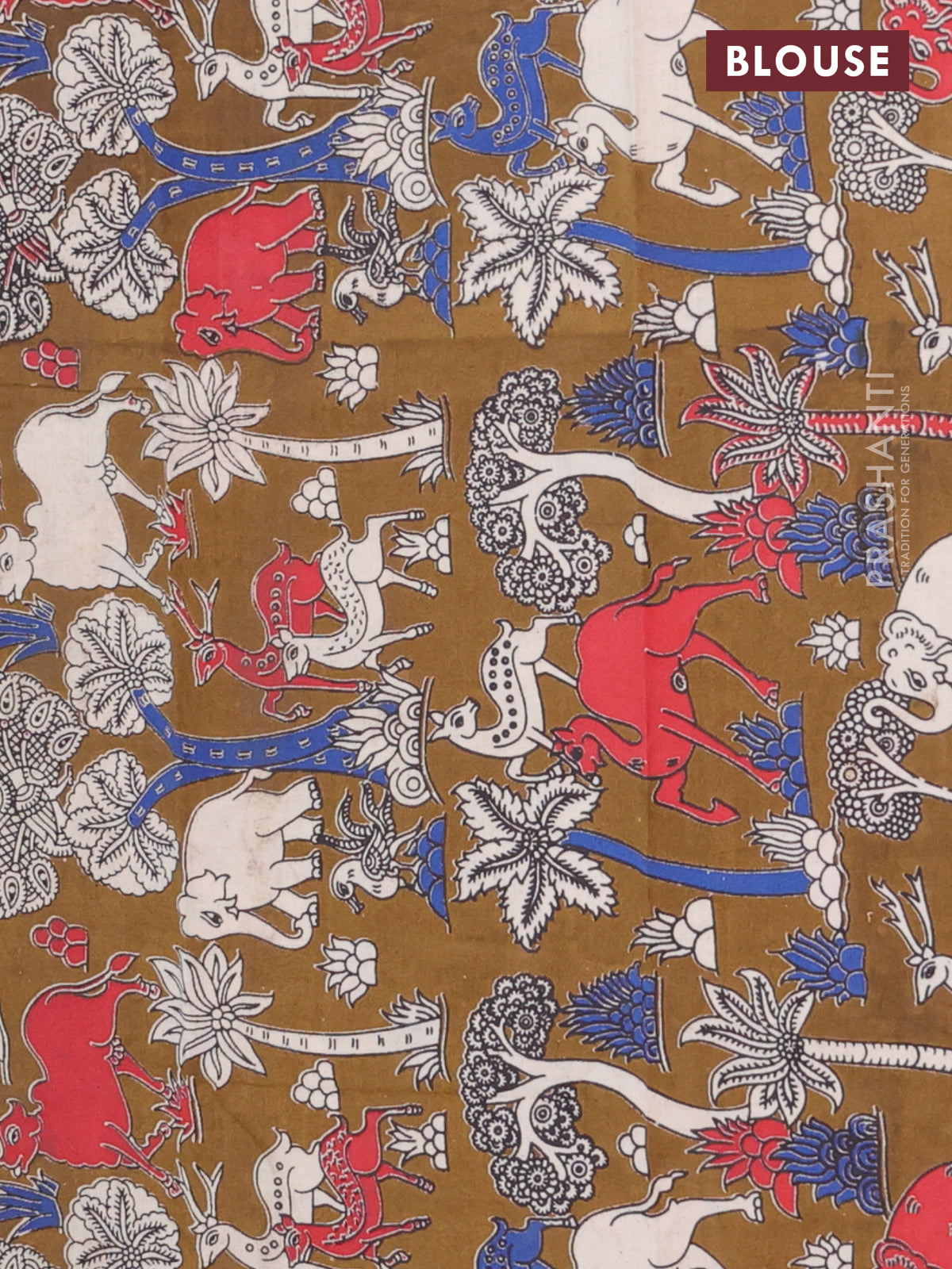 Material : Bengal Soft Cotton Blouse : Running Blouse & 1 mtr Kalamkari Blouse Attached Length of saree : 6.2... Read more