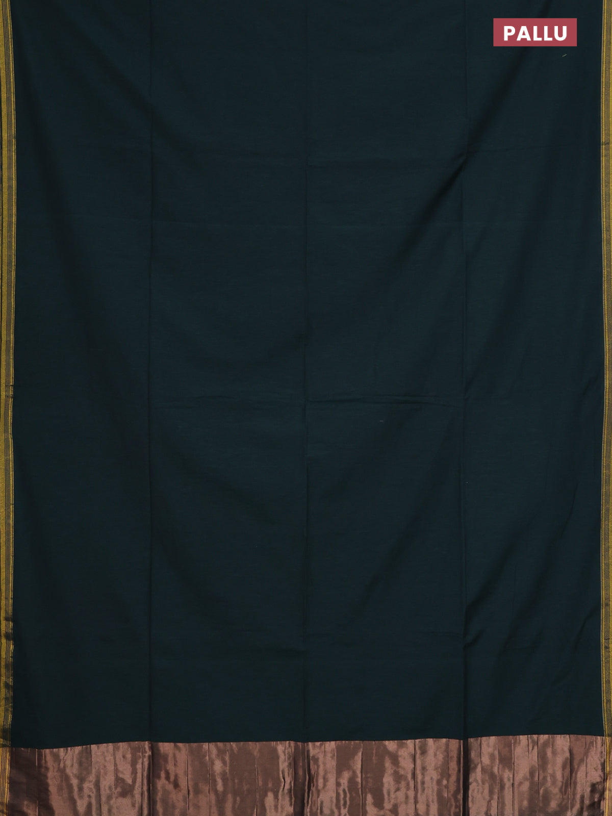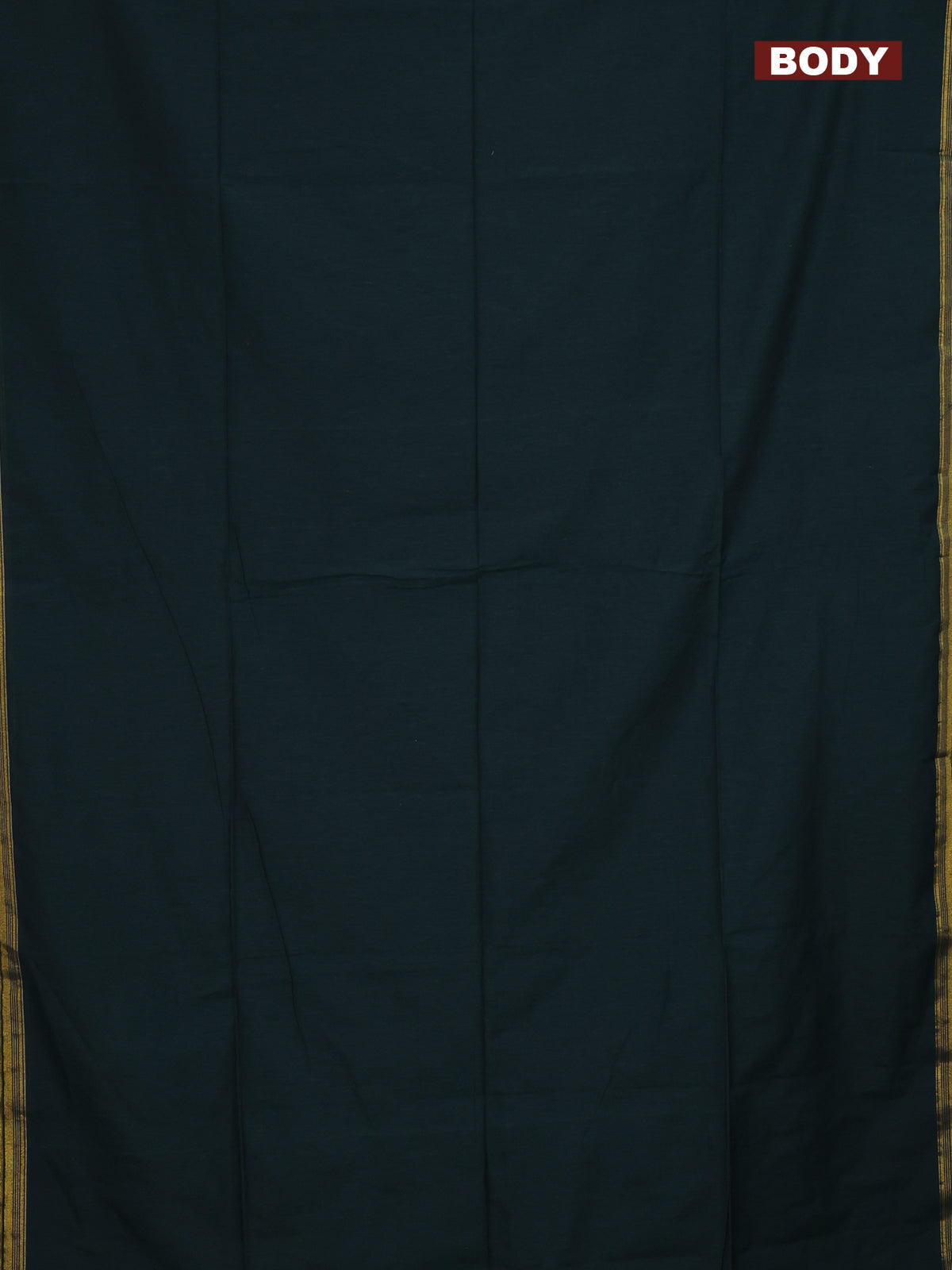 Bengal soft cotton saree bottle green and mustard yellow with plain body and zari woven border