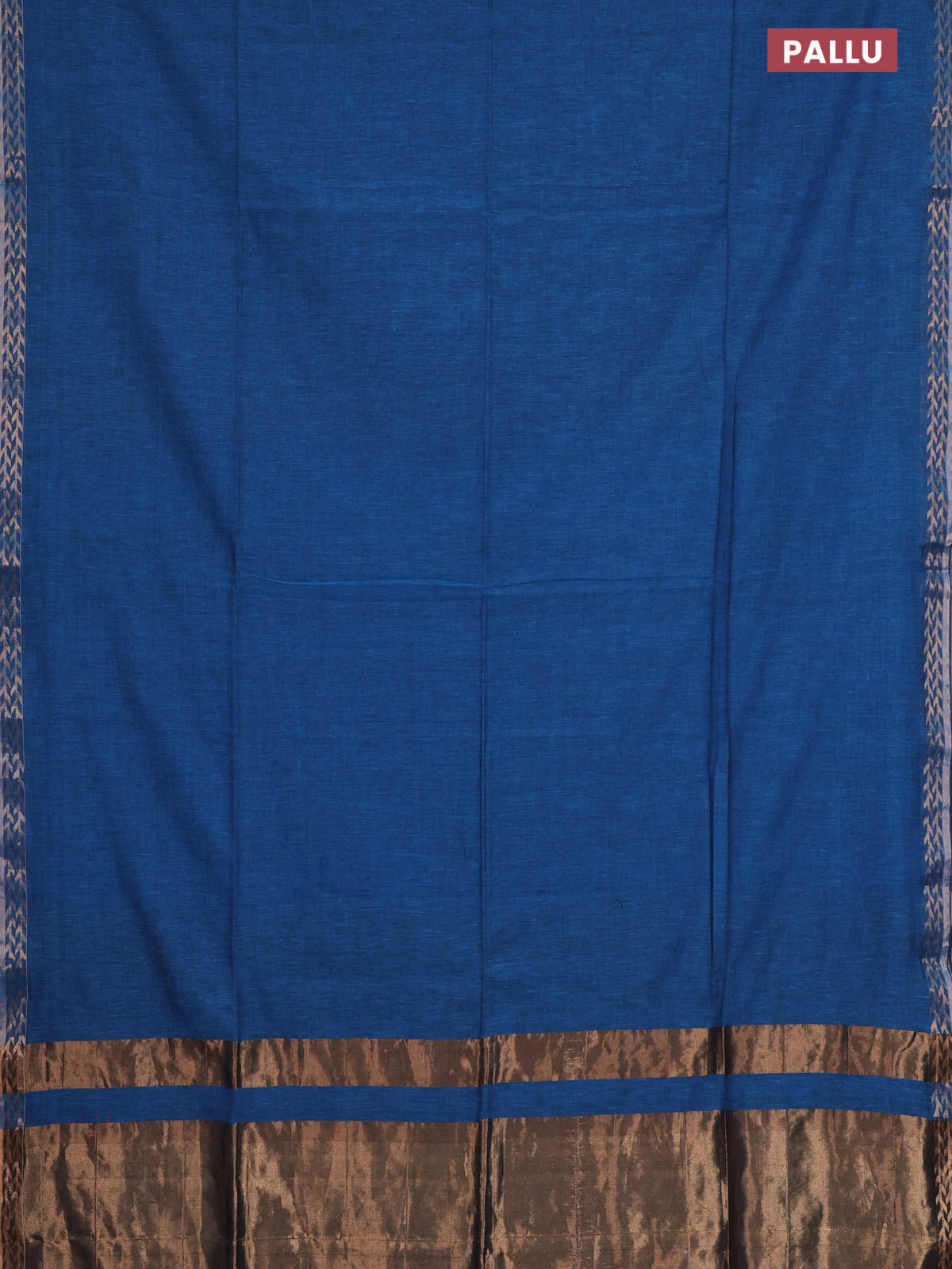Bengal soft cotton saree cs blue and mustard yellow with plain body and zari woven border