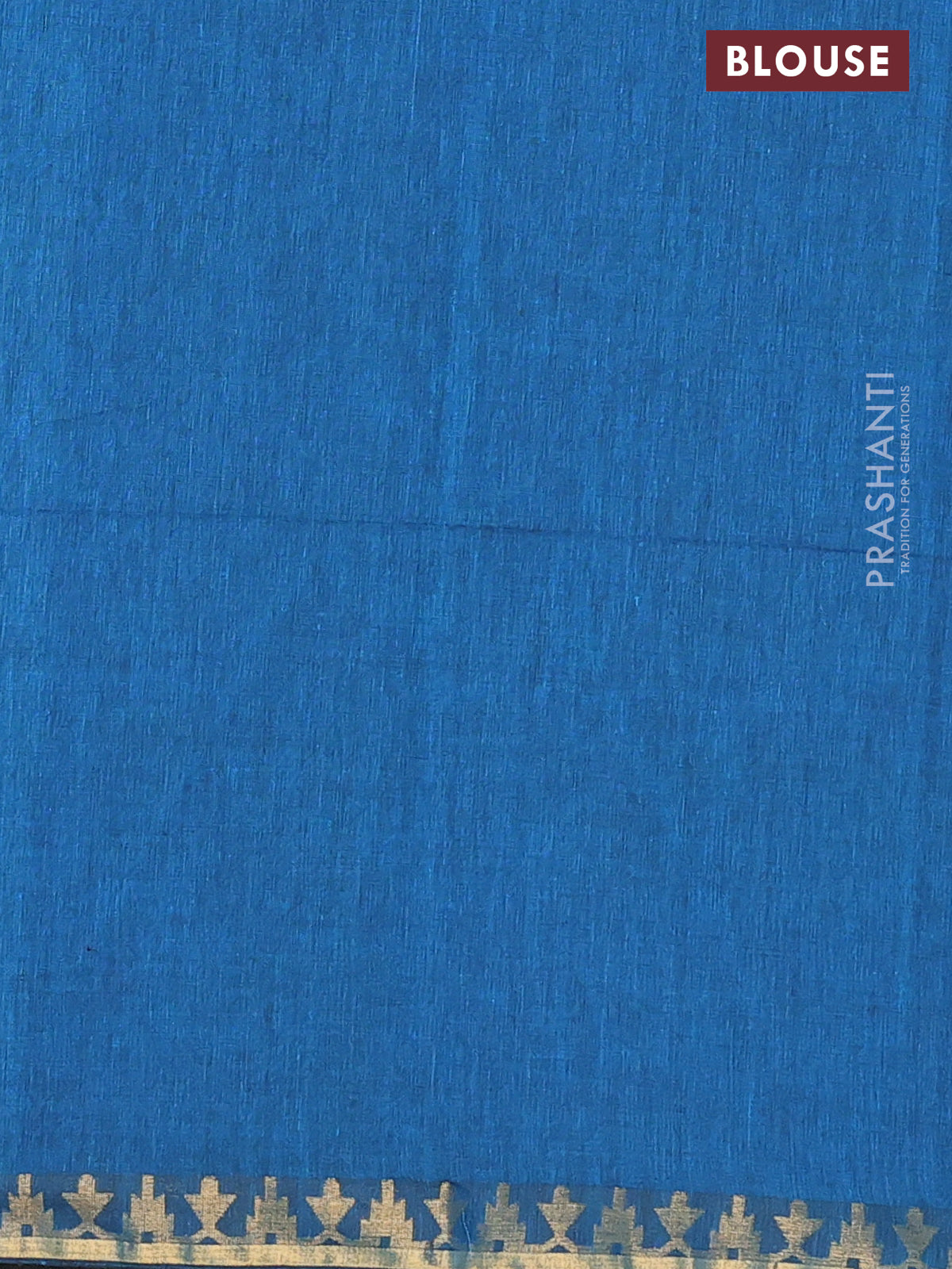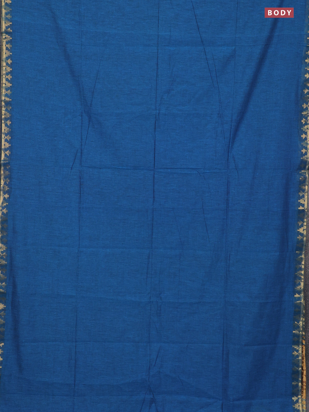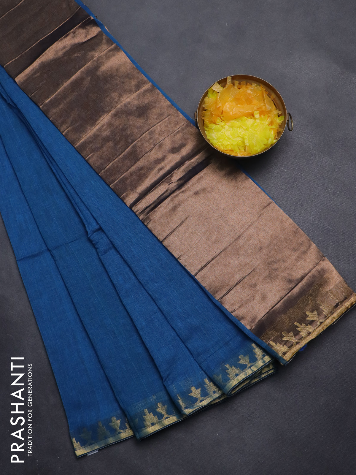 Bengal soft cotton saree cs blue with plain body and zari woven border