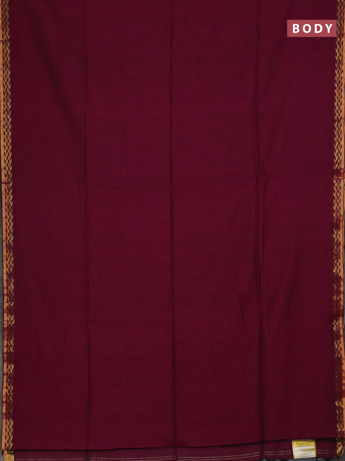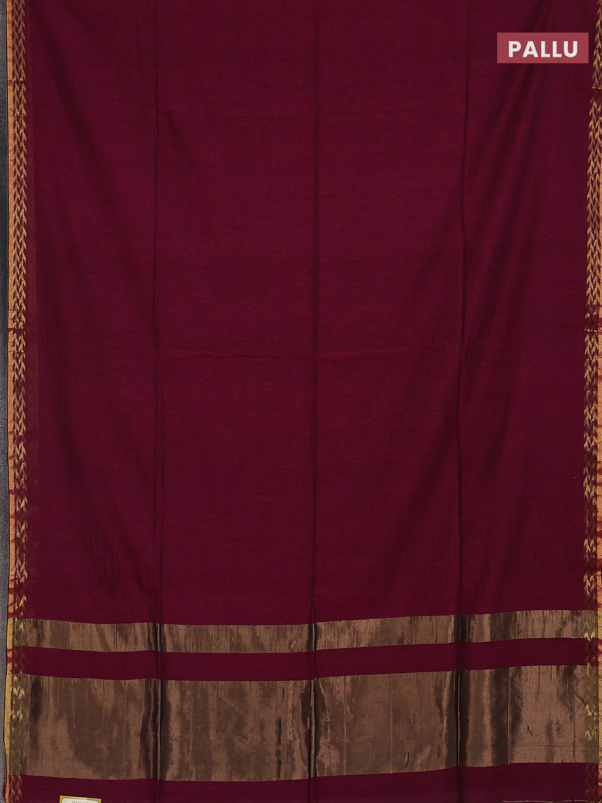Bengal soft cotton saree dark magenat pink and blue with plain body and zari woven border