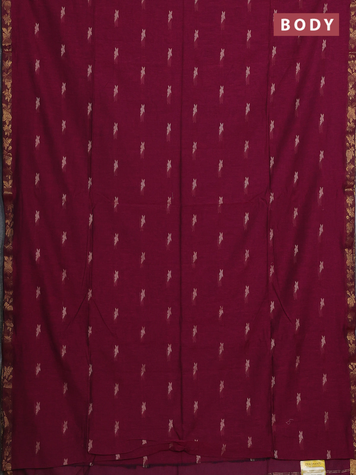 Bengal soft cotton saree dark magenta pink with thread woven buttas and zari woven border