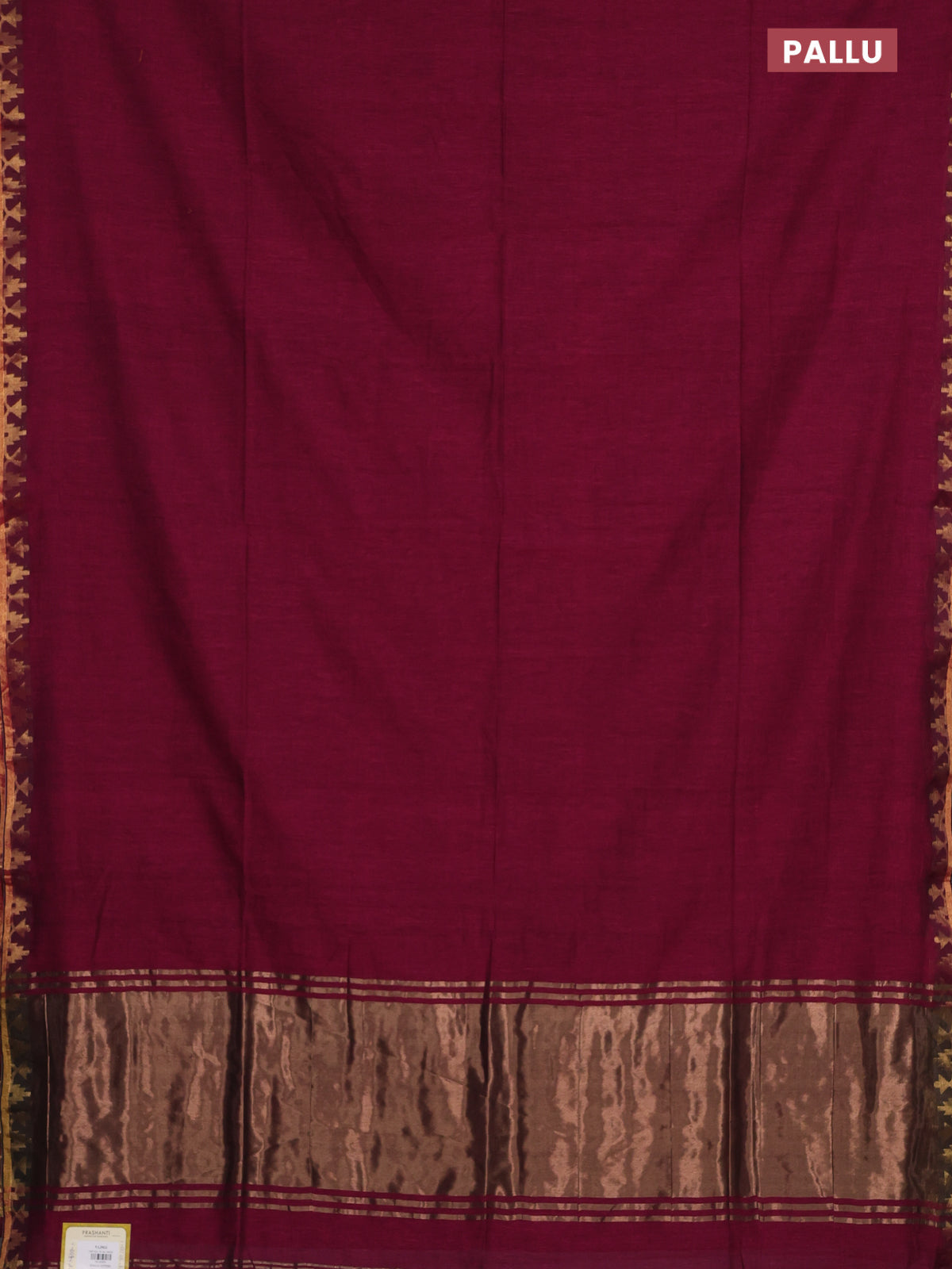 Bengal soft cotton saree magenta pink and teal green with plain body and zari woven border