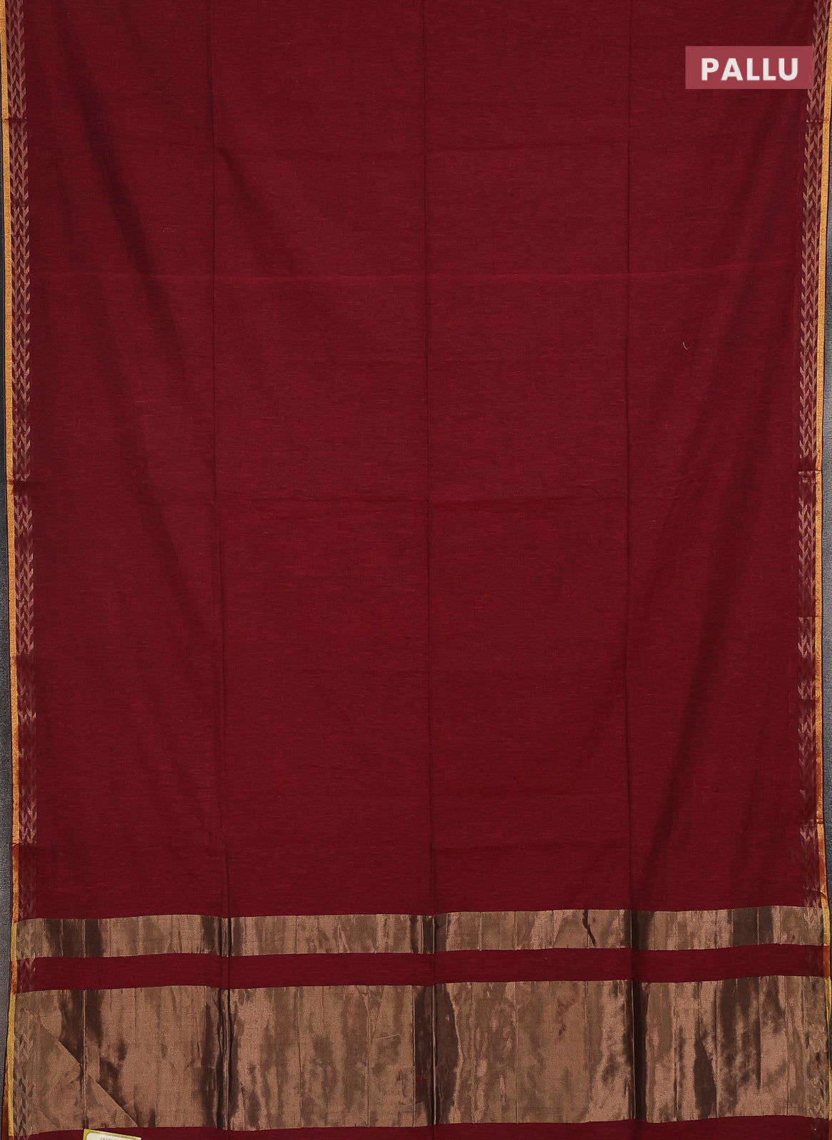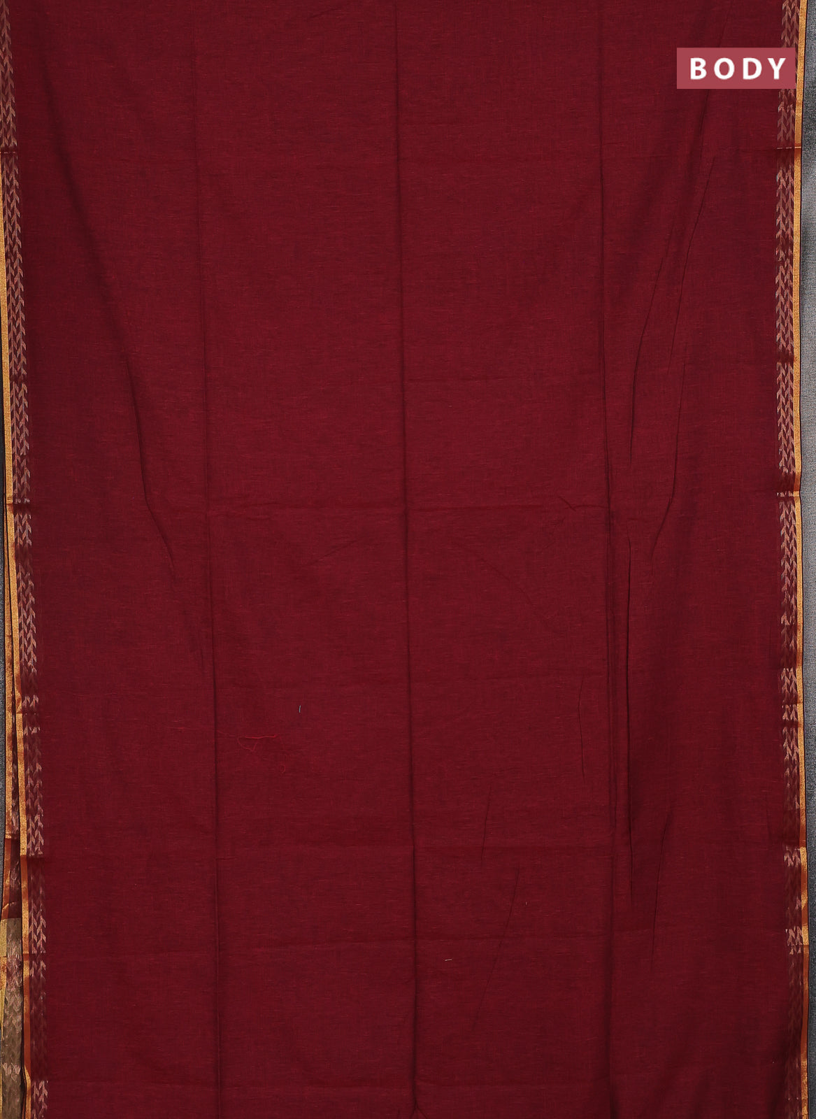 Bengal soft cotton saree maroon and blue with plain body and zari woven border