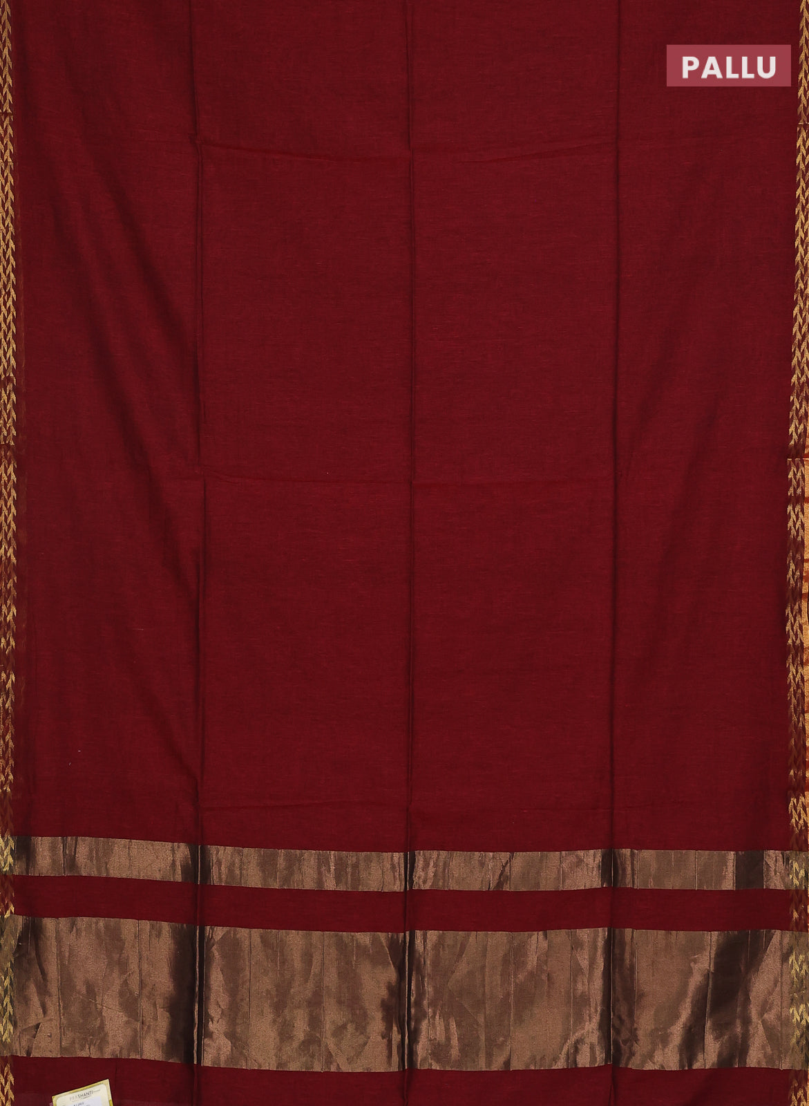 Bengal soft cotton saree maroon and blue with plain body and zari woven border