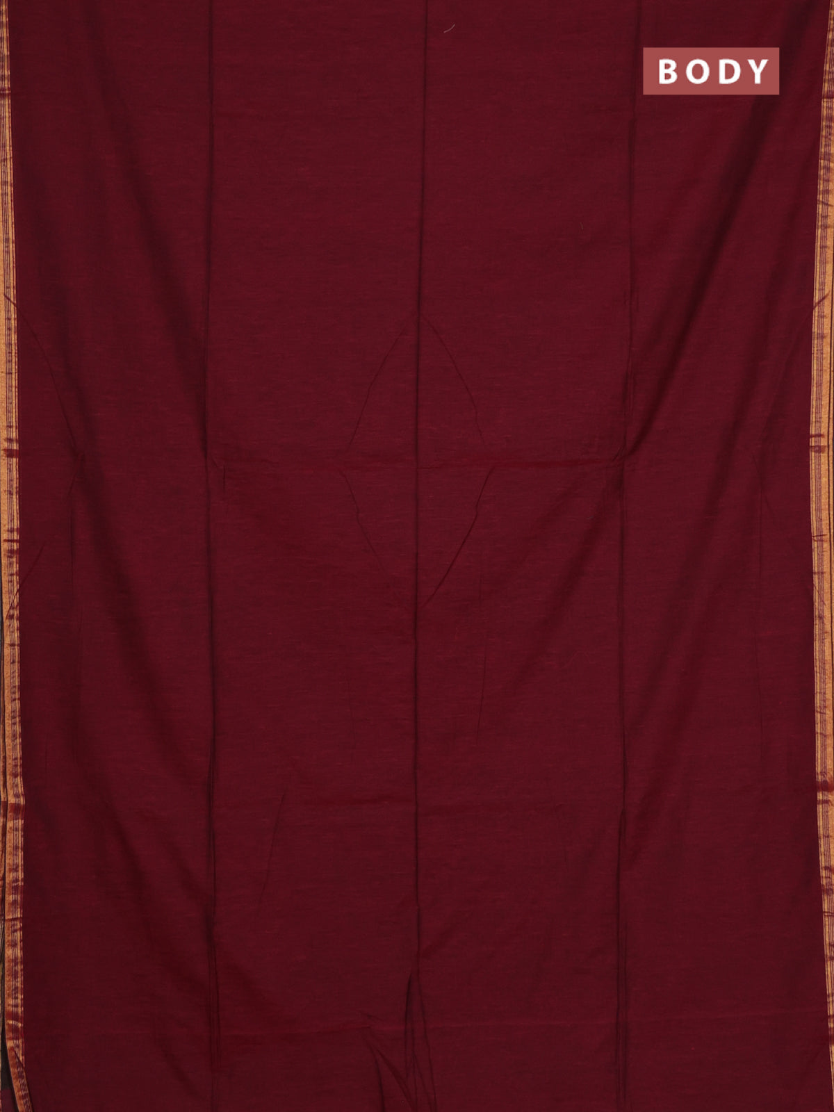 Bengal soft cotton saree maroon and blue with plain body and zari woven border