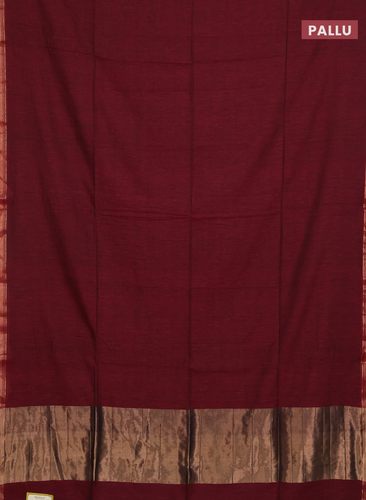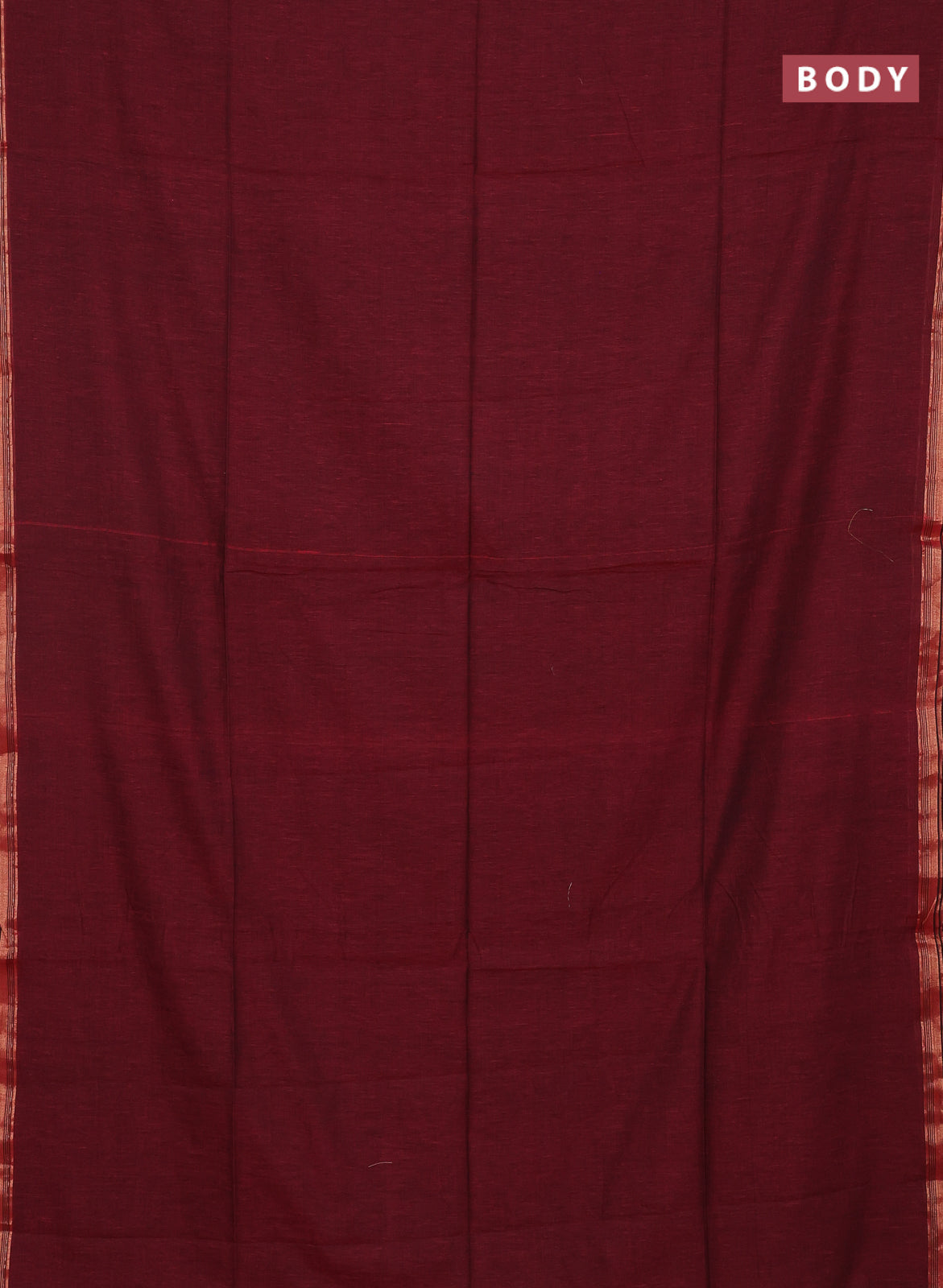 Bengal soft cotton saree maroon and mustard yellow with plain body and zari woven border