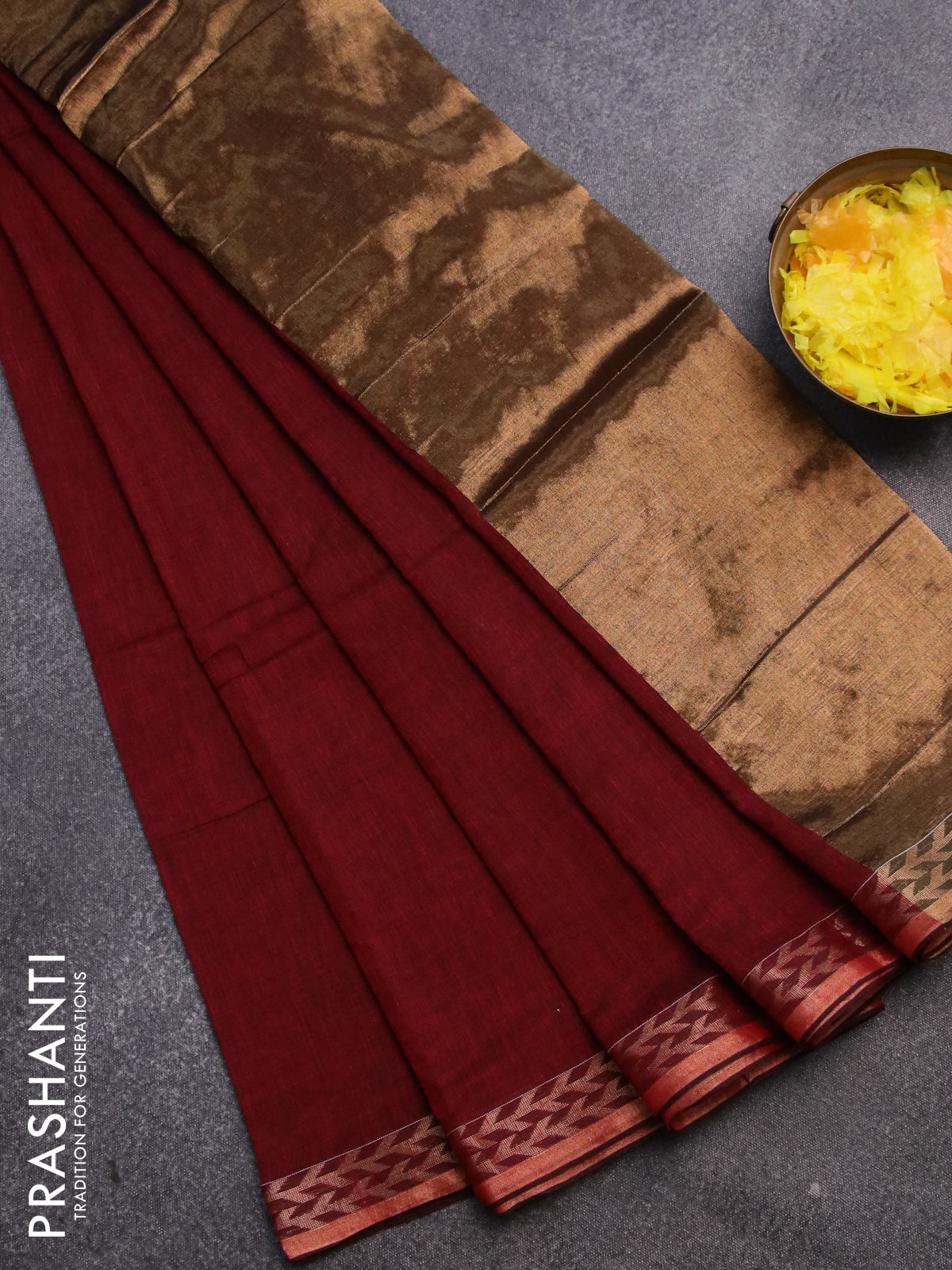 Bengal soft cotton saree maroon with plain body and zari woven border
