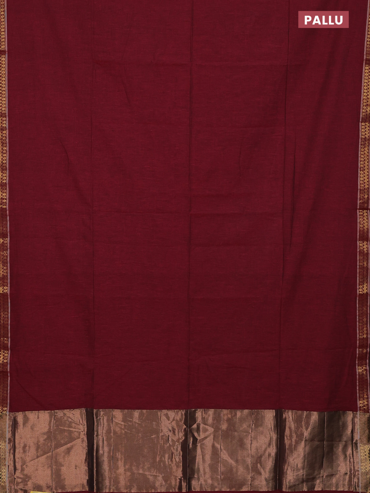Bengal soft cotton saree maroon with plain body and zari woven border
