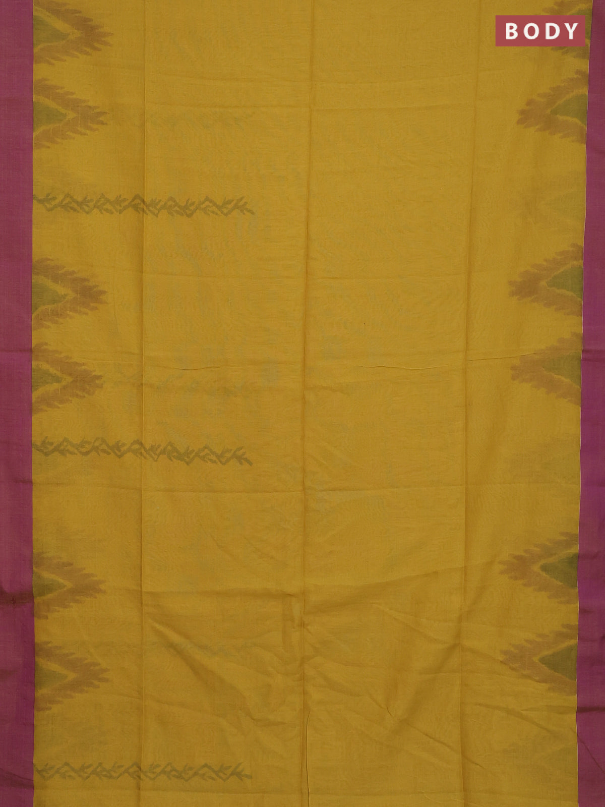 Bengal soft cotton saree mustard yellow and purple with allover butta weaves and simple border
