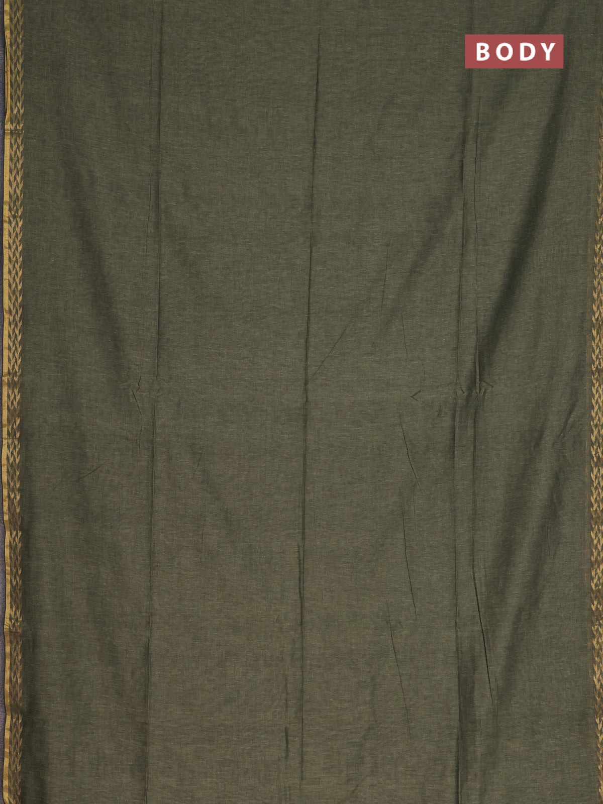 Bengal soft cotton saree pastel green and dark mustard with plain body and zari woven border