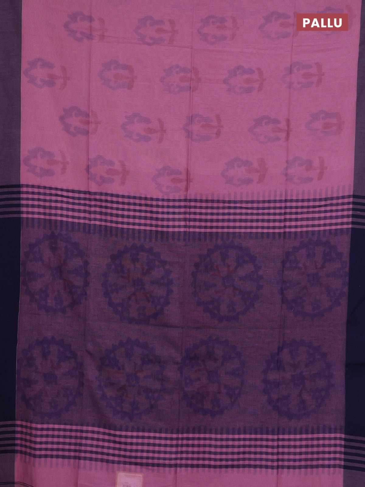 Bengal soft cotton saree pastel pink and navy blue with allover butta weaves and simple border