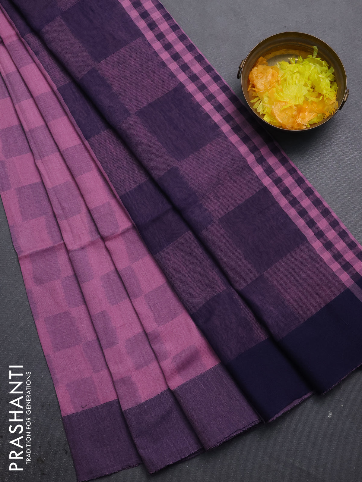 Bengal soft cotton saree pastel pink and navy blue with allover butta weaves and simple border